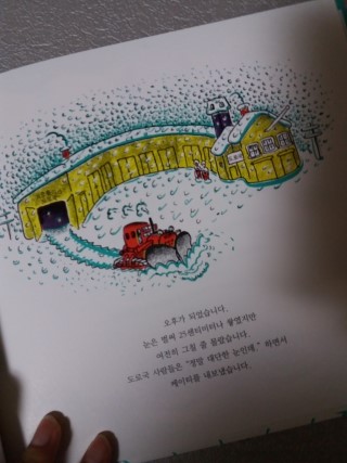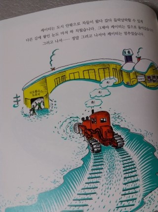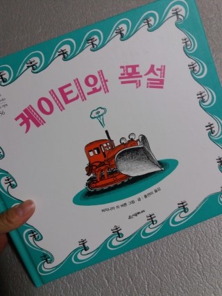 그런의미에서 요즘은 동화책을 수시로 꺼내들고, 다른 아이들이 읽는 동화책도 서로 돌려보기도 한다. <케이티와 폭설>은 아이를 앉혀두고 끝까지 열심히 핏대(?)를 세워가며 읽어줬다. 이름도 케이티고..폭설..이라.. 왠지 여자아이가 폭설에 뭔가 어찌어찌 이야기가 전개될거 같지 않은가?? 그런데, 완전 내 예상이 빗나갔다. 케이티는 여자아이도 아니고, 남자아이도 아니고 표지그대로 트랙터다. 아, 트랙터라고 해야하는게 맞는건가? 눈도 치우고, 길도 터주고, 별별거 다 하던데?? 근데, 왜 하필 케이티일까나? 진짜 여자같은 이름이 든다.