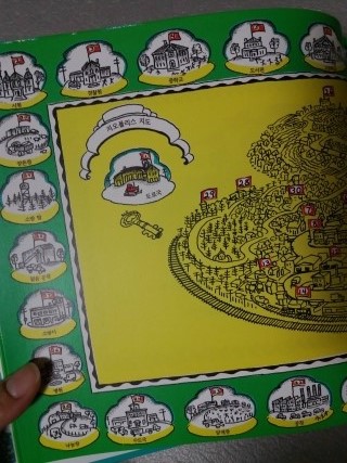 본문 그림속에서 숨은 그림을 찾는 재미와 주변에서 흔히 보는 가게와 도로, 도로표지판 , 자동차등 다양한 정보를 알려주고 지도 보는 법등을 자연스레 살펴보고 익힐수 있게 구성되었어요.