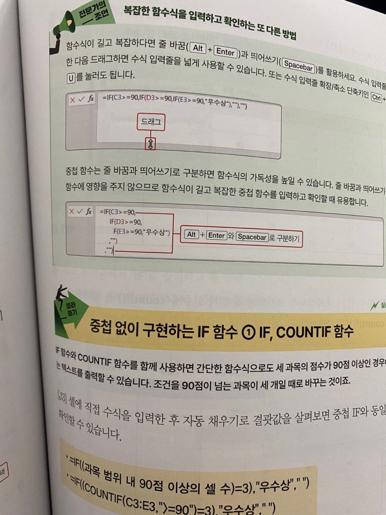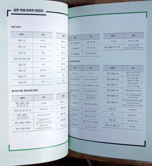 그리고, '생존 엑셀'에서는 팀장님도 놀라게 만드는 엑셀 필살기도 가르쳐주고 있는 점이 재밌었는데요, 엑셀을 사용하면서 자주 겪게 되는 오류 화면들과 해결 방법들을 알려주고 있어서 실제로 업무에서 큰 도움이 되었네요. 마지막 페이지에는 엑셀 단축키들을 총정리해서 보여주고 있어서 업무 시간을 단축할 수 있는 정보들이 담겨 있는 교재였습니다.