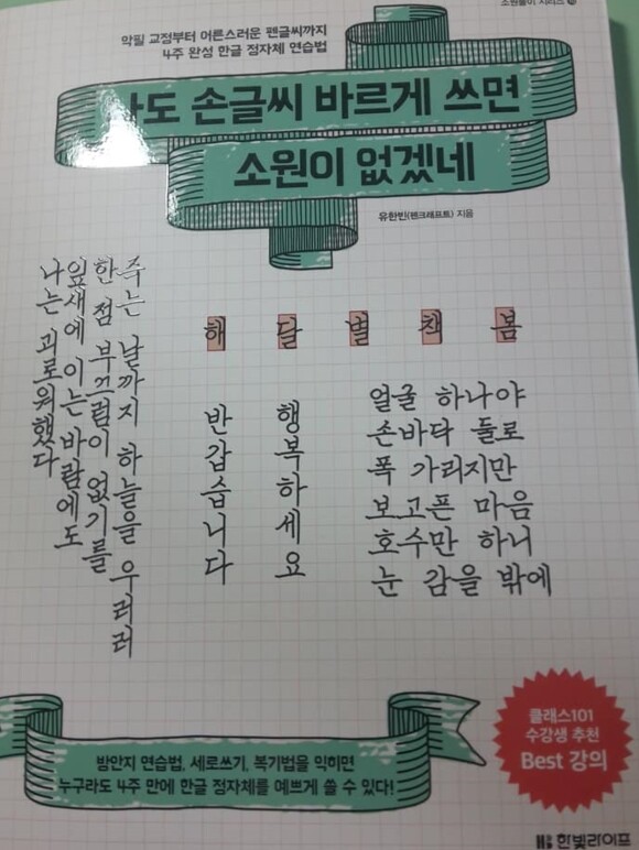 글씨 예쁘게 쓰는 책들 찾으면 거의 대부분이 캘리그라피나 만년필 같은 류의 필기구로 잘 쓰는 법이라서 아쉬웠는데요. 정말 제가 딱 찾던 말 그대로 평소에 바르고 예쁘게 쓸 수 있는, 좀 더 근본적인 글씨체를 교정할 수 있는 책인 거 같아서 구입했습니다. 따라서 열심히 하면 또박또박 예쁘게 쓸 수 있을 것 같아서 기대 중이에요. 구성이나 사은품으로 받은 연습장도 좋아서 한 번쯤 구입해 보시는 걸 추천합니다~ |