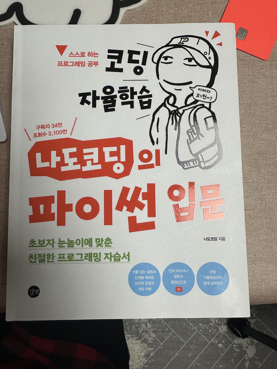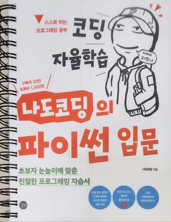 아이들이 학교에서 코딩을 배우기 시작하면서 자연스럽게 관심이 생겼다. 처음엔 단순히 아이들의 학습을 돕기 위해 기초 개념을 알아두려 했지만, 점점 더 흥미가 생기면서 나도 직접 배워보고 싶다는 생각이 들더라. 특히, 프로그래밍이 논리적인 사고력을 키우는 데 도움이 된다는 점이 가장 매력적으로 느껴지더라. 그렇게 가볍게 시작한 공부가 점점 깊어지면서, 보다 체계적으로 배우고 싶어 나도코딩님의 시리즈를 접하게 되었다. 그 중에서 가장 처음으로 배우고자 했던 것은 단기간에 살짝 맛보기만 공부했던 파이썬 파이썬의 매력은 다양한 프로그래밍이 가능하다는 것이다. 완전 초급으로 살짝 경험만 했던 몇개월 그 이후에 더 자세히 공부하고 싶었으나, 솔직히 혼자서는 자신이 없었다. 하지만 나도코딩님의 동영상을 보고 어쩌면 할수 있겠다 싶더라. 그렇게 일단 책부터 구입했다. 책을 구입할때 보통은 목차를 꼼꼼히 미리 읽어보는 편인데, 파이썬 입문은 이미 주변에서 많이 추천하고 있었기에 그냥 바로 구입했더랬다.