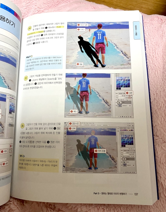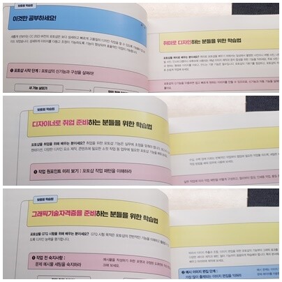 포토샵이나 일러스트 같은 프로그램 실용책은 처음엔 매번 나오는 버전마다 책을 사기도하고 포토샵책 같은 경우는 표지의 멋진 효과를 보고 사기도 했는데 예시만 다를 뿐이지 내용은 거의 똑같았어요. 그래서 이런책은 버전이 몇번 업그레이드 되어야 책을 산 보람이 있겠구나 싶어서 처음 CC버전 나오고 한번사고 CC2018는 서평단을 처음 알게 되어서 운좋게 서평단 도서를 받았고 또 4-5년 정도 흘러서 새로운 버전의 책이 필요한 시기여서 신청했는데 감사하게도 당첨이 되었네요.
