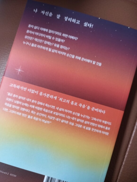 이 책은 세월이 흘러 언젠가 나이가 들어 노인이 되고, 그리고 결국 죽음을 맞이할 수 밖에 없는데, 홀로 죽음을 맞이할 때 어떤 마음가짐으로 어떻게 준비하면 좋은지를 현실적이고 구체적인 사례를 들어서 알려준다.