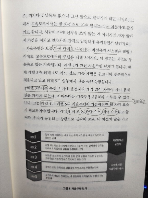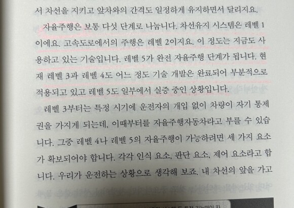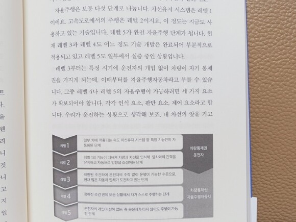 레벨 1은 차선유지 시스템, 레벨 2는 고속도로에서의 주행,