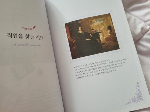 [하워스로 가는 길]과 [어린 시절 이야기]를 통해서 브론테 가족들에 대해서, 그 집안과 주위 사람들과 하워스에 머물게 된 배경과 그 지역에 대해서 조금 더 자세히 알 수 있었다. 가장 마음에 드는 부분은 아무래도 [직업을 찾는 시간]. 사람은 누구나 자신이 좋아하는 것과 앞으로의 삶에 대한 고민을 하는 시간을 갖게 마련인데, 이 기간동안 브론테 자매들도 집을 떠나기도 했고 학교에서 공부를 하고도 했으며 힘들게 교사로 일을 하기도 했다. 자매들의 각기 다른 성향이 드러나는 대목이기도 했다.