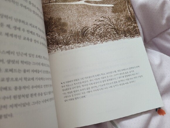 게다가 어릴 때부터 수없이 들었던 아일랜드의 전설과 영국 북부 지방의 민담, 그리고 황야. 어찌보면 더없이 쓸쓸하고 아득하게만 느껴지는 그런 요소들이 브론테 자매들에게 일생의 역작을 창조하는 데 일조했던 것은 아니었을까요. 그녀들의 그 모든 시간과 삶들이 녹아들었던 작품들. 다양한 편지와 작품들이 심도있게 그들의 마음을 들여다볼 수 있게 도와줍니다. 게다가 그림이나 조각같은 것들도 찰떡이에요! 책을 읽는 시간만큼은 그녀들과 함께 시간을 공유하는 것 같아 가슴이 벅찼습니다.