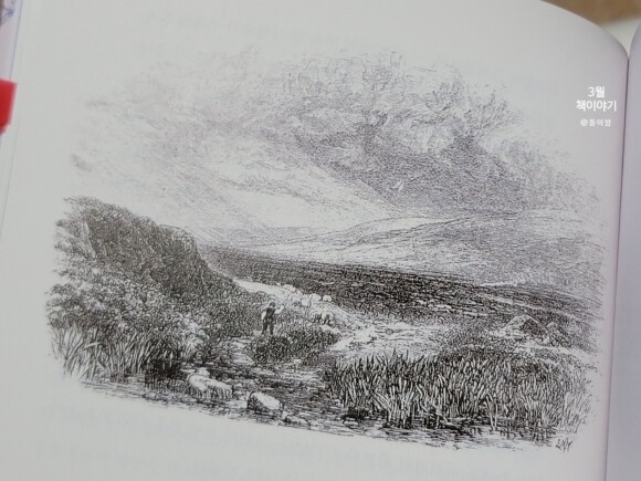 - 책에 나오는 삽화를 잘 들여다보면 황야의 풍경이 많아요. 브론테가의 삶에 늘 배경으로 존재했던 황야의 풍경입니다. 황야의 풍경을 조금 유심히 눈여겨 보면서 브론테 자매들의 고립된 삶을 연관지어보면 좋겠어요.