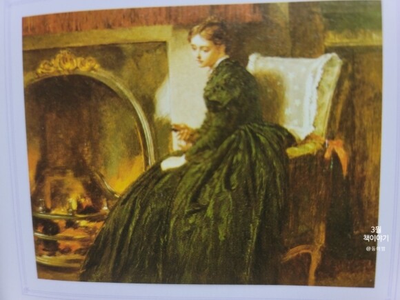홀로 남은 샬럿을 이렇게 잘 표현해냈네요. 마커스 스톤이 그린 <난롯가의 여인>인데 홀로 남은 샬럿을 진짜 그린 듯 하네요.