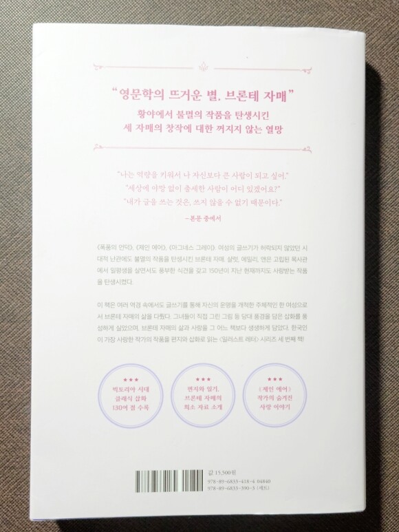 ps2. 세 자매 모두 글쓰기에 재능이 있었다는 사실이 신기하면서도 책에 실린 그녀들의 아버지가 어머니에게 헌정한 시를 보니 피는 속일 수 없다는 생각이 들기도 한다. ㅎㅎㅎ