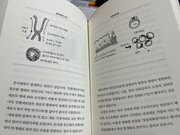 책에는 병리 진단의 실제부터 암에 대한 병리학적 해설 등 일반인들에게 익숙하지 않고 어려울만한 전문적 내용이 담겨 있습니다. 그럼에도 직접 작업한 일러스트를 통해 독자의 이해를 돕고자 한 저자의 노력 덕분에 조금이나마 더 쉽게 읽을 수 있는 것 같습니다.