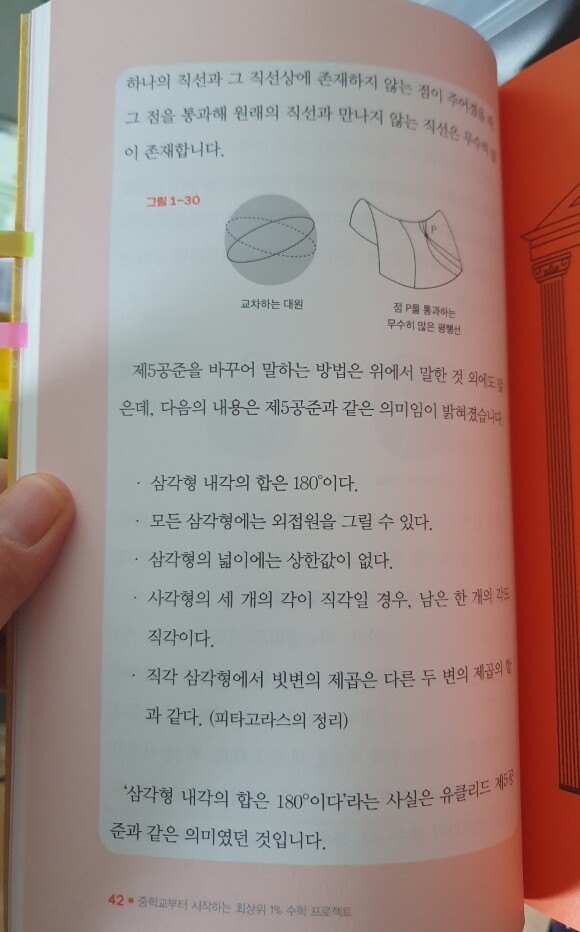 유클리드 기하학에 대해 이해하고 생각했다. 수학에 대한 원리, 수학에 대한 개념을 정확하고 자세하게 알면 구멍을 매꾸는 수학은 하지 않아도 되겠다 생각든다.