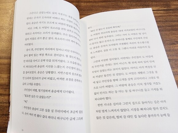 윤승은 청에 잡혀 온 소현 세자의 사람으로 일을 하게 되요. 윤승 외에도 스무 명이 되어 보이는 조선인들이 발목에 묶인 족쇄를 풀고 세자빈을 따라 가요. 그 곳에서 따스한 밥을 배불리 먹고 깊이 잠들었다는 윤승의 모습에서 편안함과 동시에 긴장이 풀렸음이 느껴졌어요. 한 나라의 백성으로 안락함을 누리며 살아간다는 것이 이토록 소중하고 감사한 일이라는 것을 새삼 느끼게 해준 부분이었어요. 그 곳에서도 윤승은 자신의 자수를 놓는 실력을 인정받아 세자빈의 부탁을 받게되요. 누나의 생사여부를 알고싶어 세자빈의 일을 돕게 되면서 펼쳐지는 윤승의 이야기가 담긴 이 책을 추천해요!