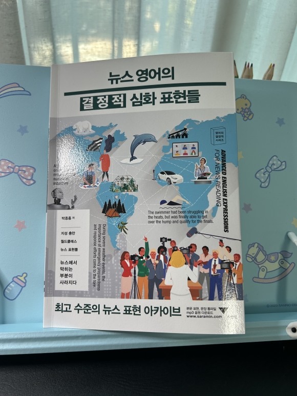 도서관에서 빌려다보고 너무 좋아서 구매했어요~~ 영어의 폭을 넓히기 위해서 예스24헤서 많이 검색해보고 고민하다가 발견한 책인데 욕심내지 않고 한 페이지씩 독파하고 있습니다 영어로 평소 관심없으면 접하지않는 다양한 사회 경제 정치 스포츠 노 논평 환경 등 표현을 배울수도 있지만 더 좋은건 뉴스 스크립트와 관련 한글 문장을 읽고 이야기 나눠보니 배경지식 쌓는데도 엄청 도움이 되더라구요ㅎ 중3 딸램이에게 이 책은 폭넓은 세상에대한 배경 지식도 익히면서 동시에 영어 실력도 키우는 두 마리 토끼잡는 기회가 될 것 같습니다!! 참고로 딸램이는 페이지에 제시된 몇가지 예문 중 골라서 자신만의 노트에 써보고 모르는 단어 찾아서 정리도 해보며 활용하고있어요 너무 잘산것같아요~~이상 내돈내산 후기였습니당^^ |