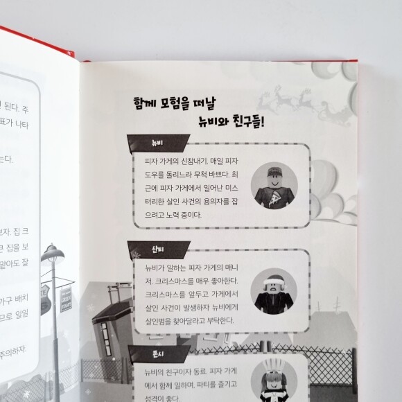 - 앉은 자리에서 책 한 권은 다 읽은 아이가 '피자 가게에서 일해요'에서는 절대 살인사건이 일어날 수 없는데 크리스마스를 앞두고 연쇄 살인 사건이 일어났다고 재밌어 한다ㅎㅎ 역시 <뉴비의 로블록스 모험 일기> 시리즈는 게임만큼이나 재밌다고 칭찬을 아끼지 않는다