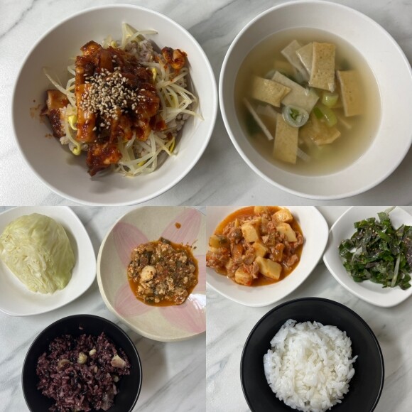 오징어콩나물비빔밥과 어묵파국 끓여보려고요. 콩나물은 구매했고, 냉동실에 있던 어묵과, 파, 오징어를 활용해 보았어요. 준비된 재료가 있으니 요리는 빨리 되더라구요. ㅎㅎ 와 오징어 콩나물 비빔밥 너무 맛있더라구요!!! 남편도 맛있다고 잘 먹었어요! 양념은 매콤하고 콩나물은 아삭아삭! 간단하고 맛있는 한끼 식사를 냉파로!!! ㅎㅎㅎ 식비 절약 짱이쥬 두부강된장도 만들어 보았어요. 양배추도 쪄주고요. 두부강된장에 싸먹으니 한끼 뚝딱이에요! 한번 먹고 남아서 냉장고에 넣어두었어요. 밥 비벼먹을 때 또 먹으려고요. 재료 준비만 해놓으면 이렇게 간단하게 해먹을 수 있다니! 집에 있는 스팸 활용해서 감자스팸짜글이도 만들어봤어요. 재료 너무 간단!!!! 진짜 재료들이 간단하니 만들기도 간단하고요 손도 덜가고 좋더라구요. 감자스팸짜글이와 곁들여먹는 깻잎무침! 맛있게 잘 먹었어요. 향긋한 깻잎에 올리브 오일 넣으니 은근 괜찮더라구요?!