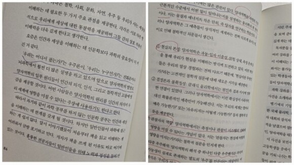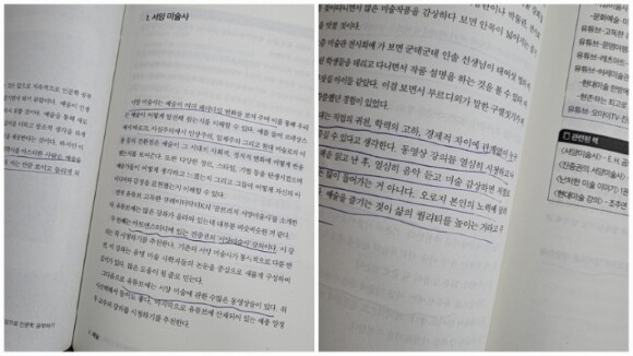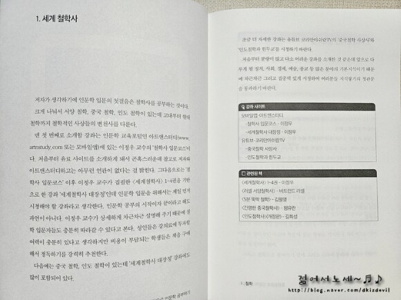 책의 두께가 얇은 것에 비해 꽤 방대한 자료가 수록되어 있어 한 번에 훅 훑고 넘어가기엔 아까운 책이었다. 특히 인문학에 관심이 있거나 삶의 가치와 행복을 찾고 있는 이들에게는 두고두고 봐야 할 책이 아닐까 싶다.