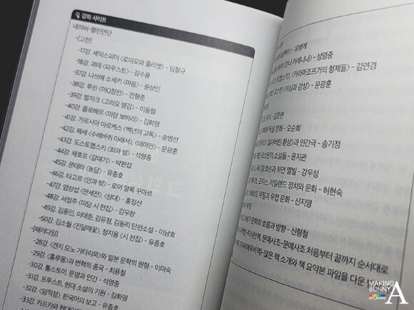 다만, 저자의 추천대로, 인문학 전반과 빅히스토리 관련 과목 모두에 관심이 있는 것이 아니라면, 공부할 분야를 정하기가 아직 애매하다면, 이 책의 목차와 동영상 강좌 제목을 먼저 살펴보는 것도 도움이 될 거라 생각합니다.