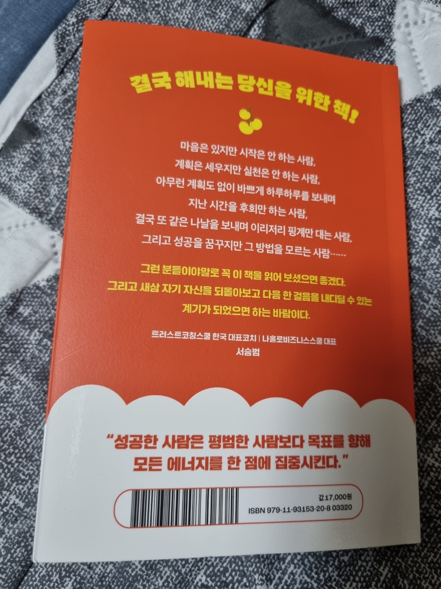『결국 해내는 생각의 습관』을 읽으면서 가장 인상 깊었던 점은 목표 설정의 중요성과 그 목표에 집중하는 방법을 체계적으로 배울 수 있다는 것이다. 바바 케이스케는 구체적인 목표 설정법과 그 목표에 집중할 때 발휘되는 에너지의 힘을 강조하며, 독자로 하여금 자신만의 목표를 설정하고 그 목표를 향해 나아가도록 동기를 부여한다. ![]()