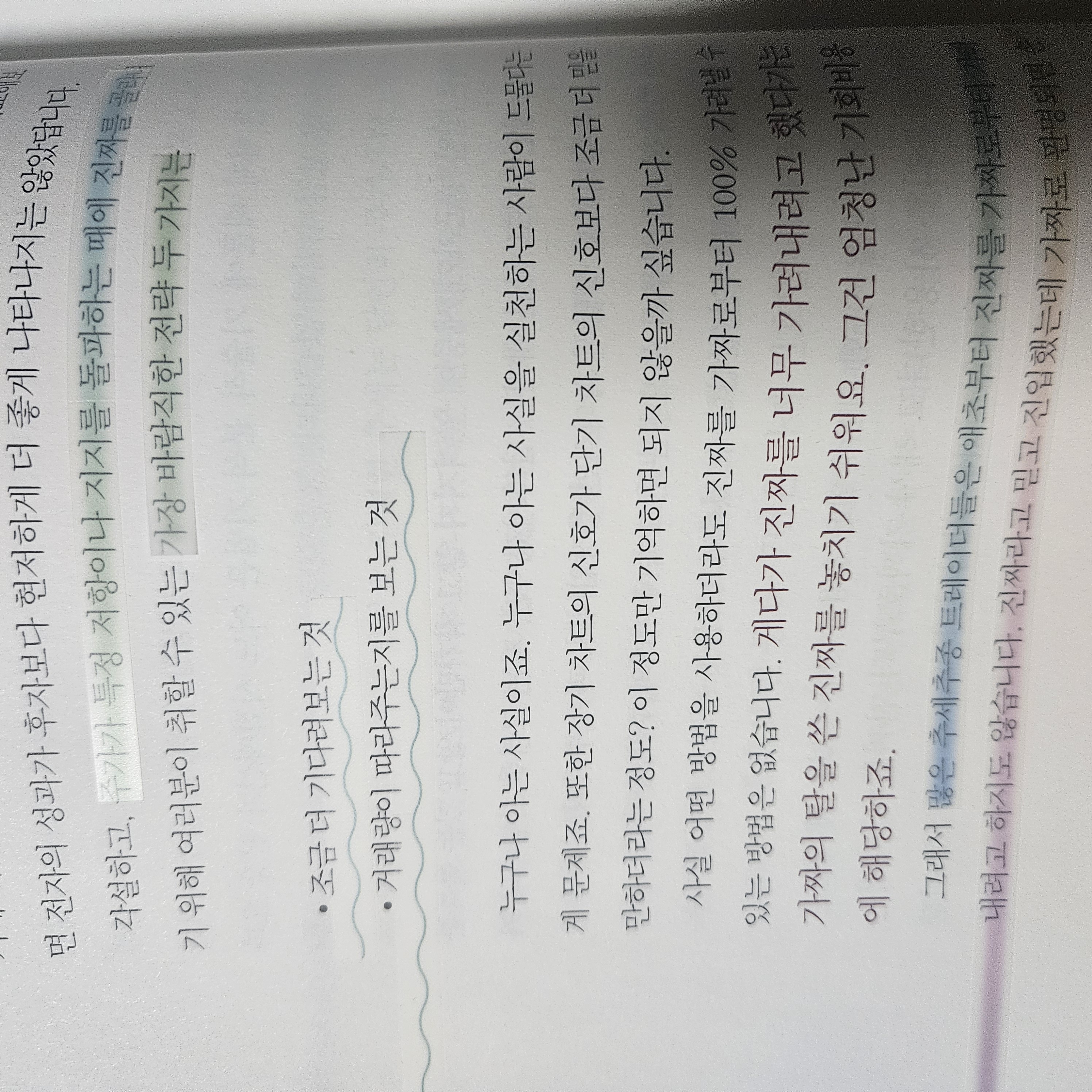 | 문제집에 밑줄이 너무 많아지니까 중요한 부분이 어딘지 찾기가 어려워지는 것 같아서 구매했습니다. 문제집에는 색상보다는 물결이 더 나은 것 같기도 하네요. 아무래도 색이 있는 건 글자가 흐려보여서요. 다만 색이 있어서 위치는 눈에 잘 띕니다. 그런 점에서는 나쁘지 않은 것 같아요. |