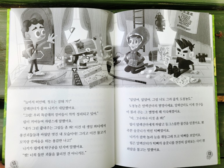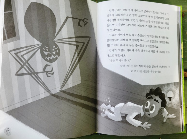 #절대열면안되는공포의노트 #땅다람람쥐날과으스스그림자습격사건 #사파리 #트로이커밍스 글 그림 당연히 있어야 하는 #그림자 가 어느날 보이지 않고 나의 그림자가 다른모습으로 보인다면당신을 어떨까? 절대열면안되는공포의노트3번째 시리즈이다. 글밥이 많은 책으로 넘어갈때에 읽으면 좋다. 이 시리즈는 특히나 아이들 스스로 문제를 찾고 탐구하고 해결하는 모습이 보기 좋다. 그리고 젤 뒷장에 독후활동을 할수 있도록 해두어서 한번 더 책 내용을 상기할 수 있다. 알렉산더는 슈퍼 초비밀 괴물 특공대의 특공대원으로 함께 활동하는 립과 니키를 무척이나 좋아하고 신뢰한다. 갑자기 괴물노트의 한 쪽을 확 찢는 니키.. 괴물노트에서 본 그림과 비슷한 니키의 송곳니 단체 사진을 찍을 때 웃지 않는 니키. 그림자 역시 보이지 않는다. 점점 이상함을 감지해본다. 땅다람쥐 날에 모인 사람들의 그림자가 전부 이상하다.그런데 누구하나 신경쓰지 않는다. 친구의 비밀을 알게 된다면 어떻게 해야 할까? 아이와 나눈 대화중 하나이다. 친구의 소중한 비밀은 지켜 주고 싶다고 얘기하는 아들... #으스스그림자 는 과연 어떻게 될까요? |