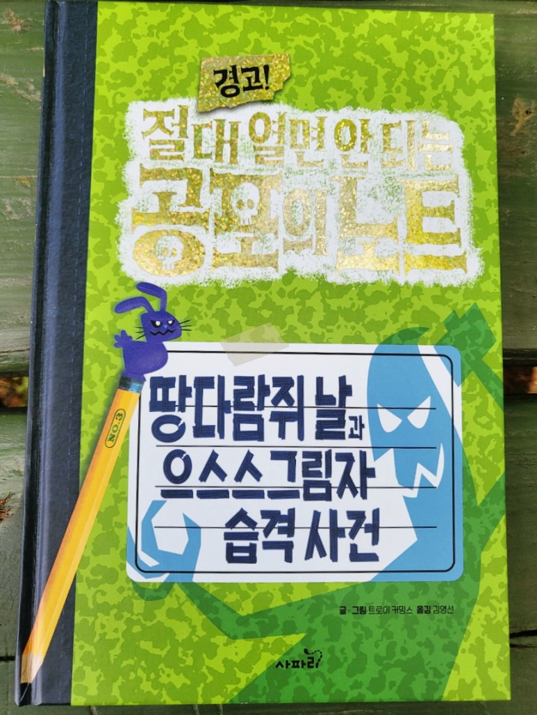 아이들의 상상력을 한껏 끌어올릴 수 있는 <경고! 절대 열면 안 되는 공포의 노트> 글줄책 읽기에 재미를 붙인 아이가 초3 아이가 시리즈가 나올 때마다 재밌게 읽고 있는 책인데요 '땅다람쥐 날과 으스스 그림자 습격 사건'으로 3권이 있어 함께 읽게 되었어요.