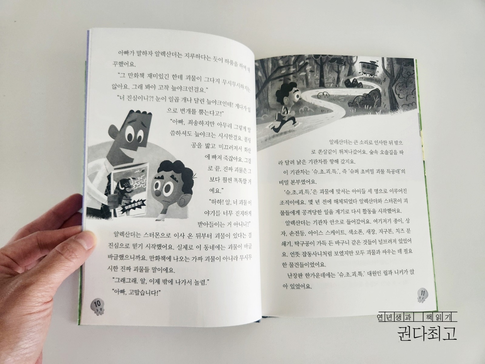![]() ![]() ![]() 경고! 절대 열면 안 되는 공포의 노트 3 땅다람쥐 날과 으스스그림 초등학교 3학년이 되니 책을 고르는 일이 예전보다 까다로워요. 어떤 책은 글이 많아서, 어떤 책은 유아틱해서, 어떤 책은 여자 책 같아서, 여러가지 이유로 아이의 관심을 못받기도 한답니다.ㅠ 그러나 경고! 절대 열면 안 되는 공포의 노트 3 초등학교 3학년 남자 어린이가 실패하지 않고 재미있게 읽었어요. : ) 앉은 자리에서 순삭하며 학습만화 읽듯이 집중해서 읽었네요. 이 시리즈는 세계 최대의 어린이 도서 출판사인 스콜라스틱 출판사의 대표 챕터북 브랜드예요. 미국의 국공립 학교에서는 교재와 프로그램도 사용하는 시리즈라고 해요. 아마존에서 선생님의 선택 도서로도 선정되었데요. 글밥도 적당히 있고 그림도 많고 스토리도 흥미로워서 아이가 재미있게 읽어요. 시리즈물 이지만 전의 이야기를 읽지 않아도 충분히 재미있게 읽을 수 있습니다. 주인공 알렉산더는 친구들과 슈포 초비밀 괴물 특공대를 만드는데요! 수상한 이빨을 발견하고 어떤 괴물인지 탐구하지만 친구 니키의 수상한 행동으로 난항을 겪습니다. 그리고 사진을 찍는데 이상한 그림자도 찍혀요. 과연 비밀이 무엇인지 파헤쳐가며 사건해결과 깨달음을 얻습니다. 글책 읽기 시작한 아이들이라면 아주 재미있게 읽을 수 있을거예요! 출판사에서 도서를 제공받은 후 작성한 후기입니다. |