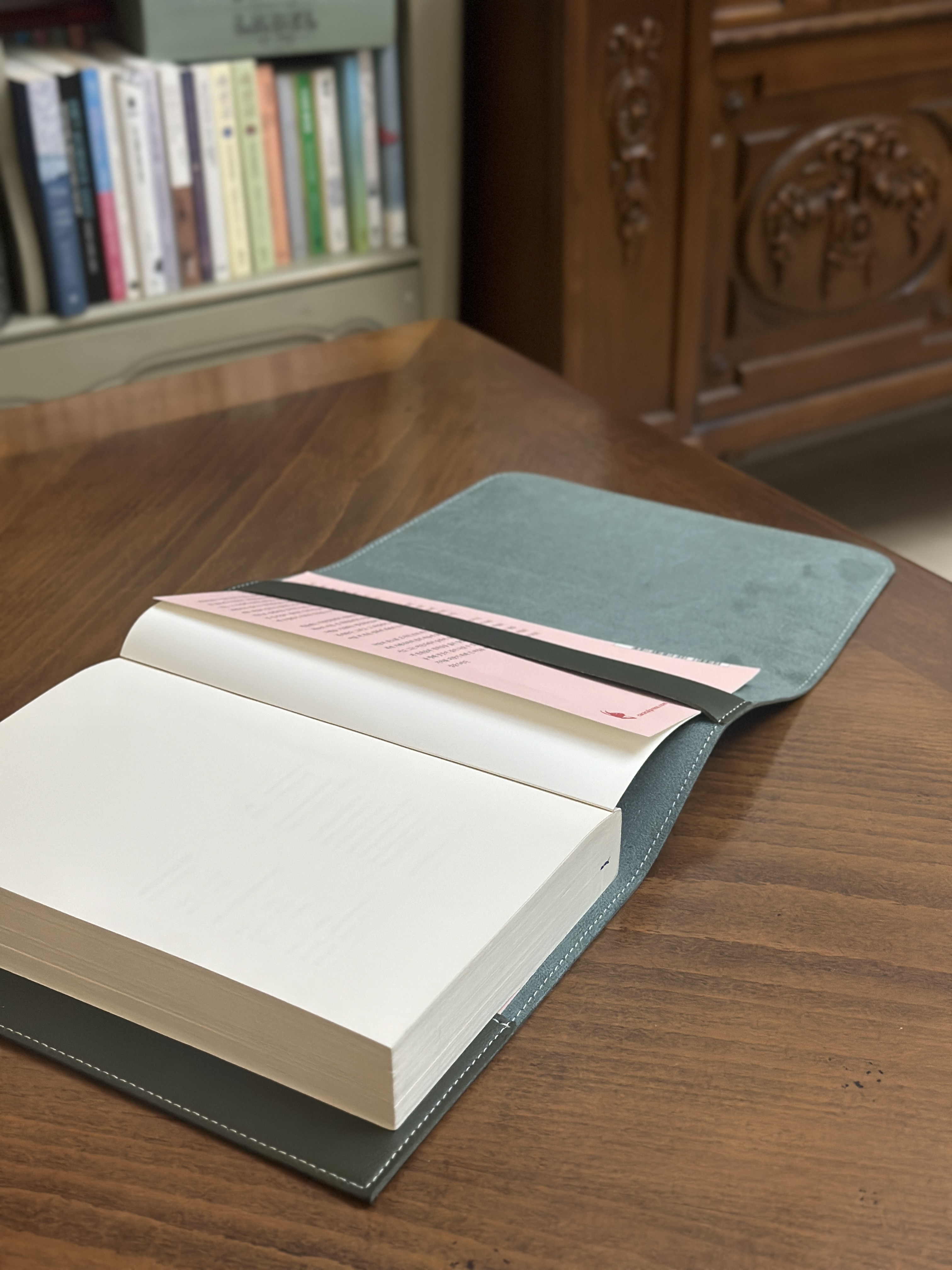 넘 예쁘고 좋아요. 둘 다 맘에 듭니다?? 큰 사이즈는 민음사 세계문학도 딱 맞고 어지간한 자기계발서 등 인문 경제 서적 커버되고 작은 사이즈는 젊은 작가 시리즈 정도의 책들 커버됩니다. 재질도 부드럽고 고급스럽습니다. 페브릭은 두께감이 있어서 고민만 하고 안 샀는데 이걸로 하길 넘 잘했어요.