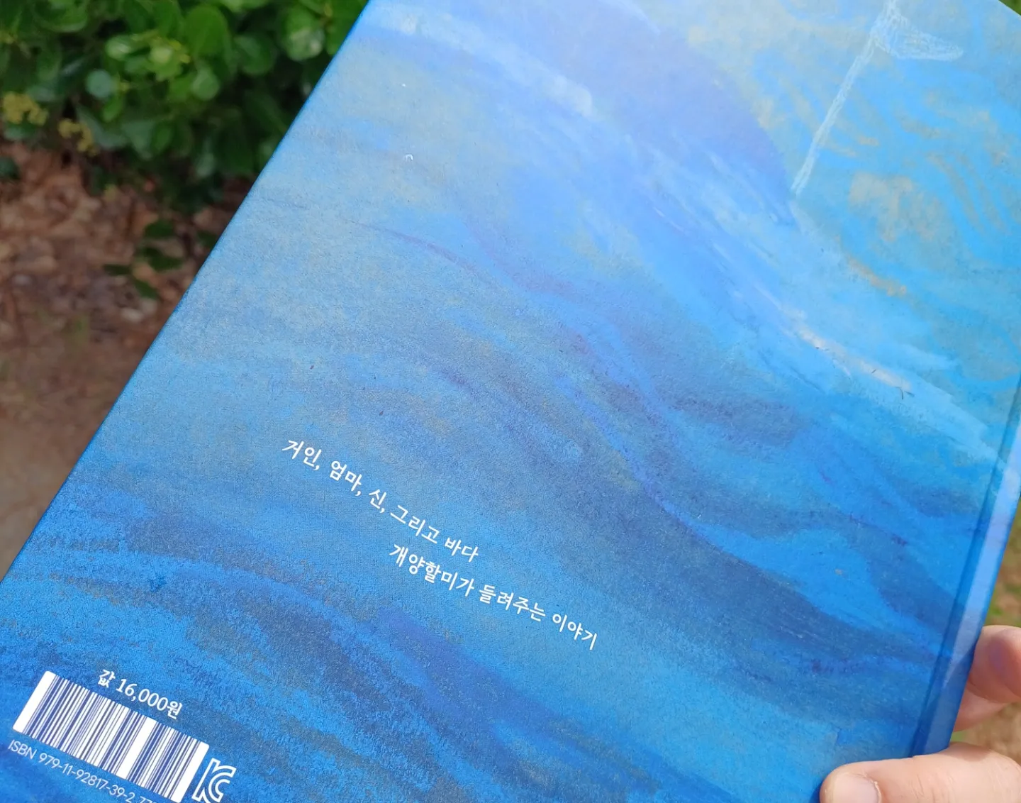 뒷표지도 함께 펼쳐서 살펴보았어요. 거인, 엄마, 신 그리고 바다. 개양할미 이야기에 함께 빠져들어 보겠습니다.