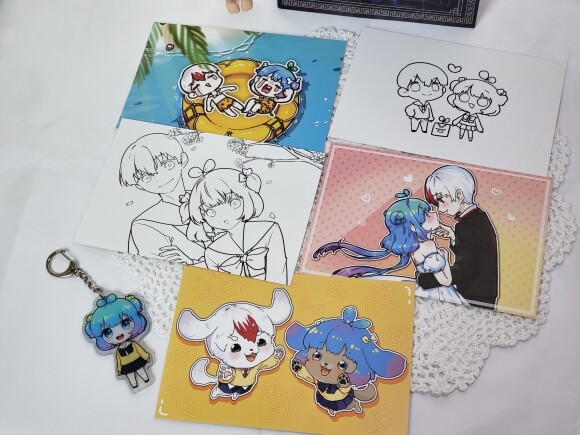아크릴 키링과 함께 온 엽서 5장은 쁘띠 허브가 직접 그렸다고 한다. 나름대로 귀여운 캐릭터들이 그려있고, 2장은 직접 색칠할 수 있도록 밑선만 그려져있다. 아이는 아끼는 듯 색칠하지 않고 보관하고 있다. :)
