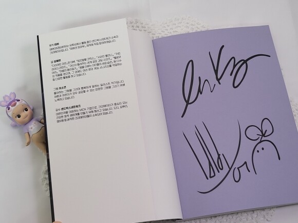첫 장에 보면 친필 사인인 듯 위, 아래 2개의 사인이 있다. 아마도 위에는 태경, 밑에는 쁘띠 허브의 사인으로 보인다.