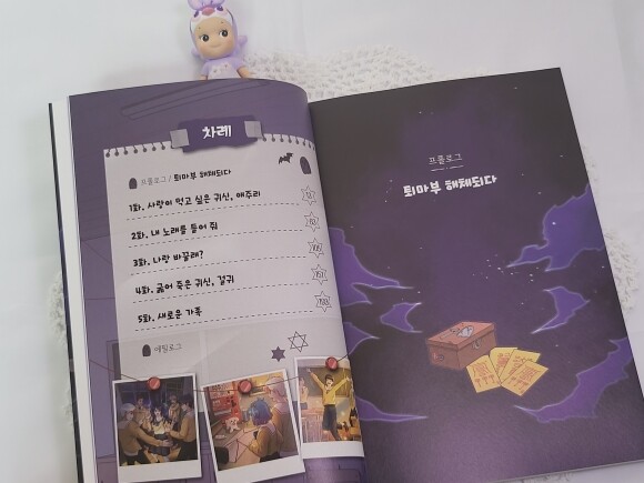 그렇게 유튜브를 보던 어느 날, 아이가 쁘띠 허브의 책이 출판한다는 소식을 보았는지 예약 구매를 하면 키링도 받을 수 있다며 주문을 해달라고 졸랐다. 남편은 퇴마에 관한 내용이라며 꺼림직해하며 반대를 했고, 나 또한 썩 좋게 보지는 않아서 사주고 싶지 않았었다. 아이가 워낙 조르기도 했고, 미리 보기를 통해 살짝 엿보니 만화책보다는 장편 동화 같아 그나마 글책이니까 사주자 싶었다. 조금이라도 책을 읽었으면 하는 엄마의 마음이랄까.