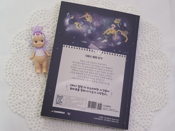 퇴마부에 쁘허 태경 종규 찬수 민우가 모여 귀신을 잡는내용이다. 귀신들의 이야기를 듣고 문제해결을 위해서 힘쓰는 퇴마부원들이 나온다. 이런 이야기들이 다 그렇듯 문제 해결되는건 더 스르륵 풀리듯하다. 시리즈물이라서 다음권들도 재밌을것 같다. |