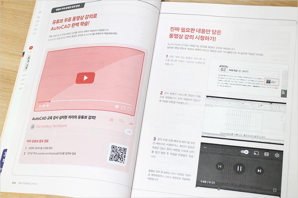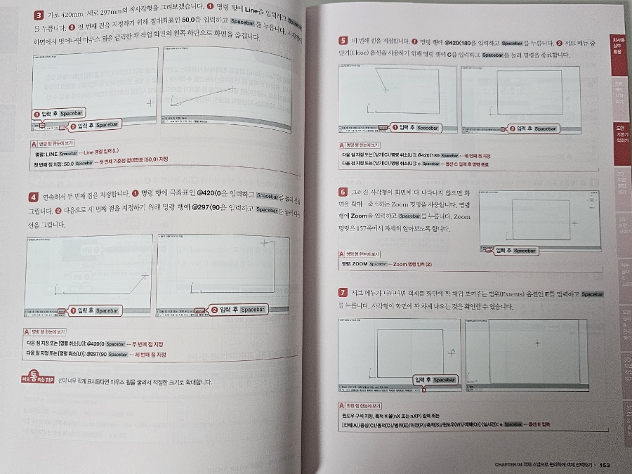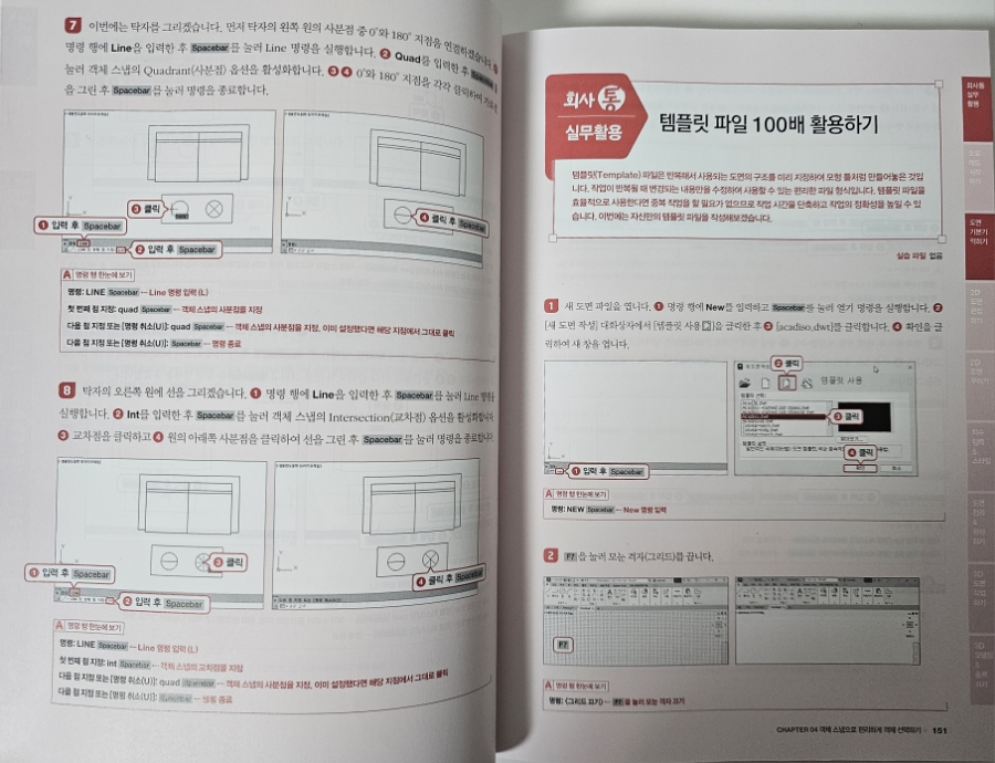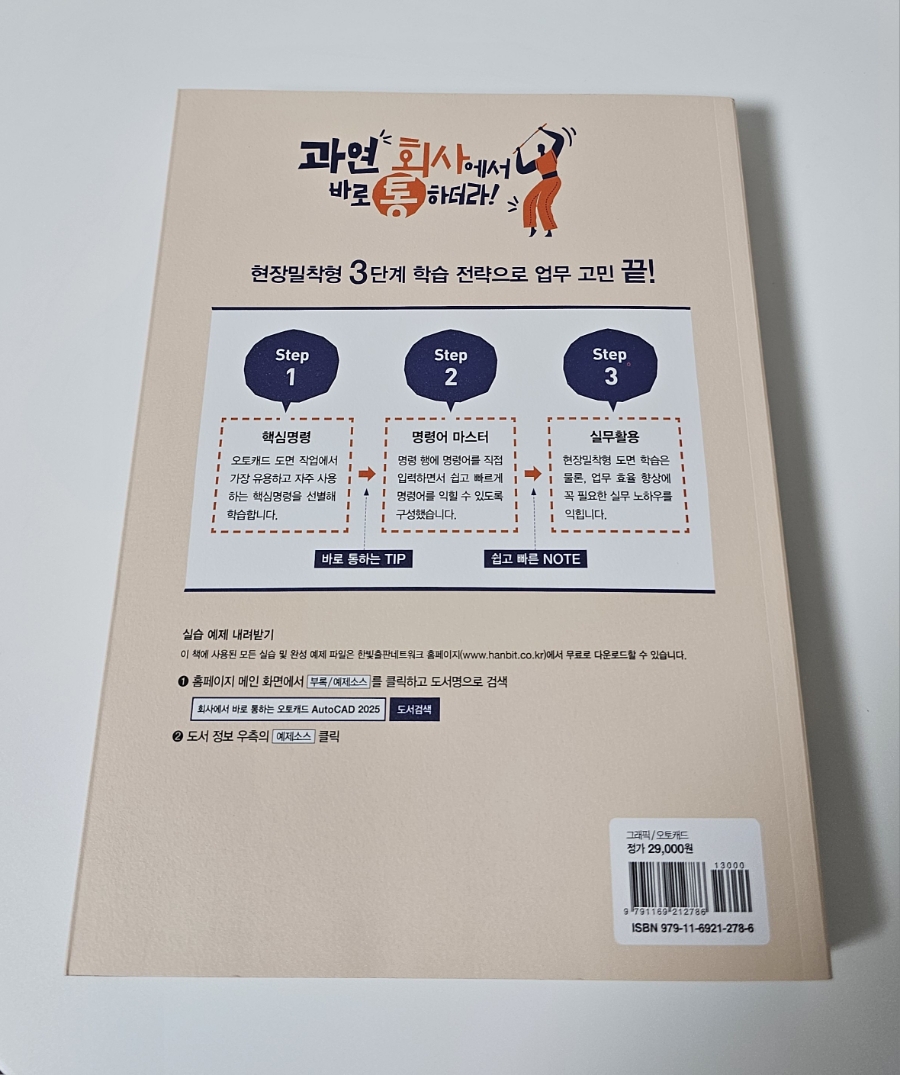 도면을 이해하는 데 도움이 될 것 같아서 독학으로 캐드를 배워보고 싶어서 책을 보면서 공부하고 있어요 바로 실무에 필요한 내용이 담겨 있는 <회사에서 바로 통하는 오토캐드 AutoCAD 2025>다양한 도면을 직접 따라 해볼 수 있어서 효율적으로 학습할 수 있어요 그리고 오토캐드 실무에서 자주 사용하는 명령어도 있어서 공부하고 체크해 가면서 실무에서 바로 적용해 보고 있어요 AutoCAD의 원리와 기능을 실무 도면 예제를 통해 학습하면서 엄선한 현장밀착형 도면 예제를 따라 하며 도면을 어떻게 다루는지, 각 명령은 어떠한 상황에서 활용되는지 직접 실습할 수 있어요 지금 당장 업무에 써먹을 수 있는 실무 도면으로 학습하다 보면, 어느새 AutoCAD의 유용한 기능을 자연스럽게 활용하다 보면 회사에서 바로바로 적용해 볼 수 있을 것 같아요 영상으로 학습하면서 실습 예제 파일을 활용하면서 공부를 하다 보면 캐드와 친해질 수 있겠죠 입문자로서 실무에서 바로 적용되는 내용이 담긴 <회사에서 바로 통하는 오토캐드 AutoCAD 2025>보면서 열공을 해야겠어요 ![]()