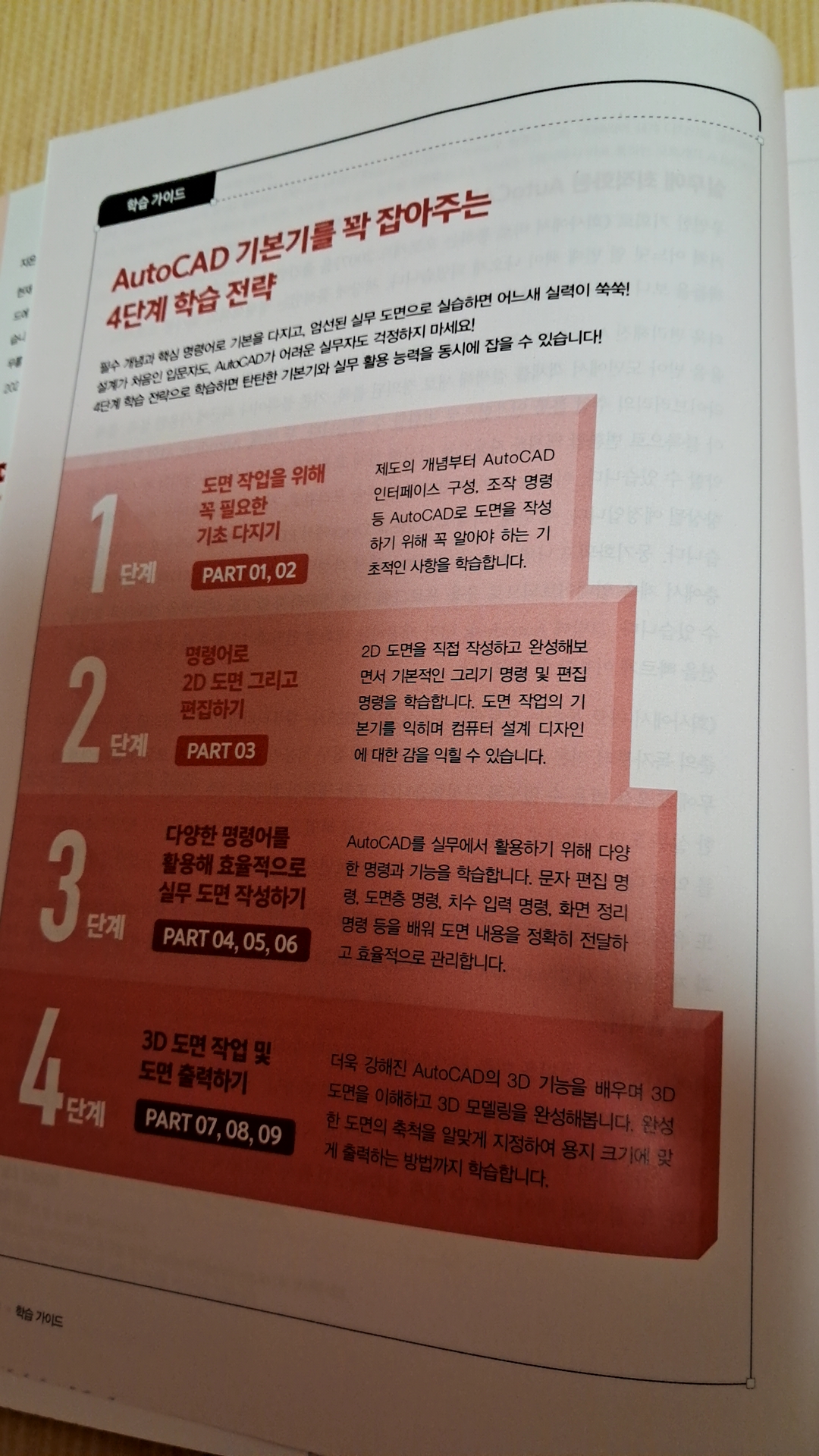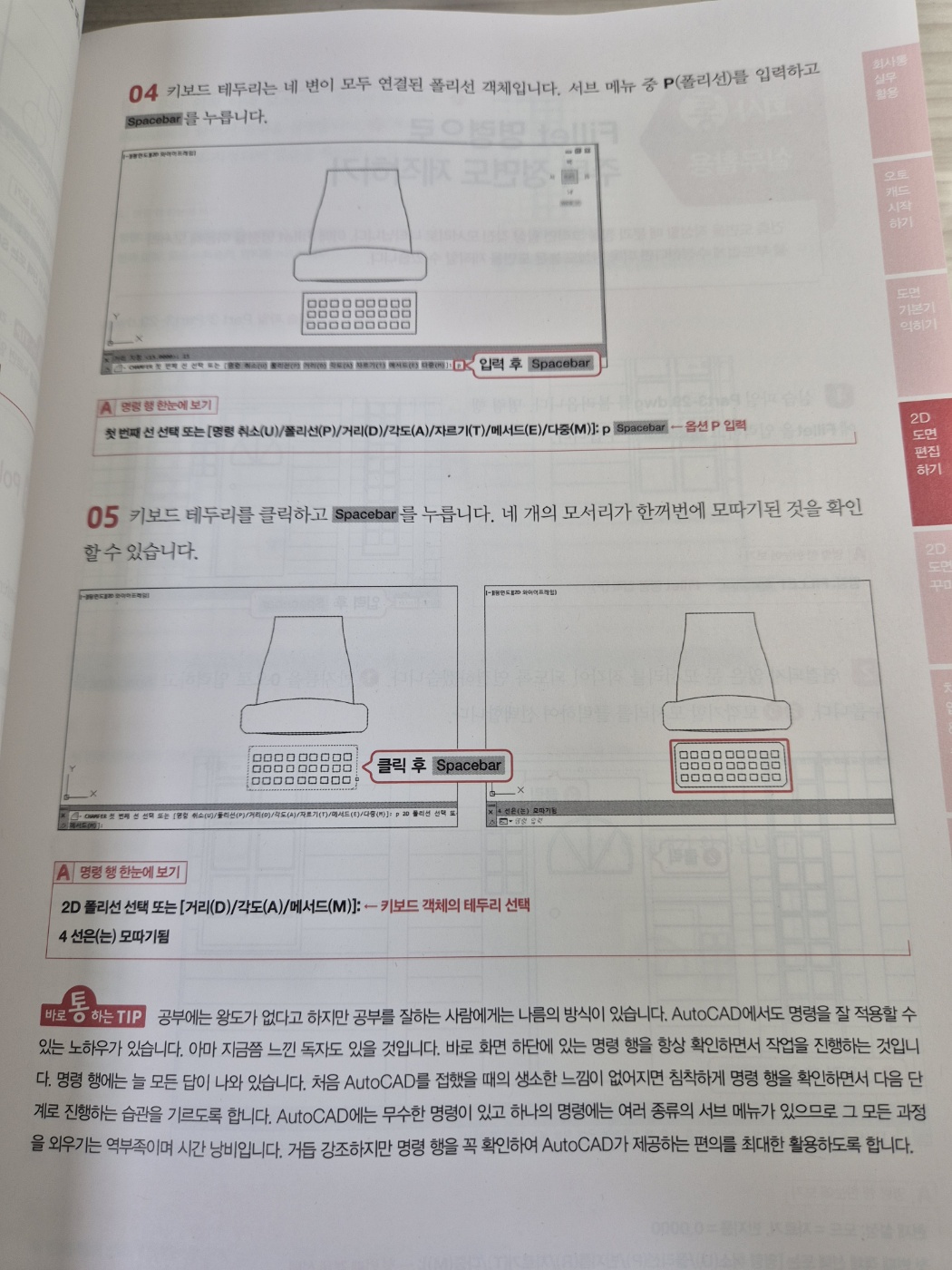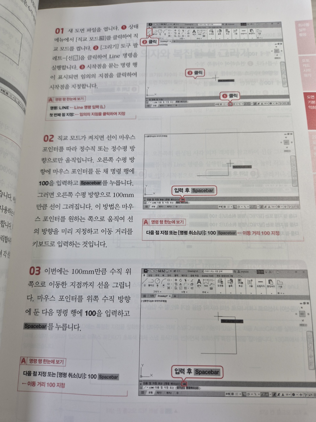 도면을 이해하는 데 도움이 될 것 같아서 독학으로 캐드를 배워보고 싶어서 책을 보면서 공부하고 있어요 바로 실무에 필요한 내용이 담겨 있는 <회사에서 바로 통하는 오토캐드 AutoCAD 2025>다양한 도면을 직접 따라 해볼 수 있어서 효율적으로 학습할 수 있어요 그리고 오토캐드 실무에서 자주 사용하는 명령어도 있어서 공부하고 체크해 가면서 실무에서 바로 적용해 보고 있어요 AutoCAD의 원리와 기능을 실무 도면 예제를 통해 학습하면서 엄선한 현장밀착형 도면 예제를 따라 하며 도면을 어떻게 다루는지, 각 명령은 어떠한 상황에서 활용되는지 직접 실습할 수 있어요 지금 당장 업무에 써먹을 수 있는 실무 도면으로 학습하다 보면, 어느새 AutoCAD의 유용한 기능을 자연스럽게 활용하다 보면 회사에서 바로바로 적용해 볼 수 있을 것 같아요 영상으로 학습하면서 실습 예제 파일을 활용하면서 공부를 하다 보면 캐드와 친해질 수 있겠죠 입문자로서 실무에서 바로 적용되는 내용이 담긴 <회사에서 바로 통하는 오토캐드 AutoCAD 2025>보면서 열공을 해야겠어요 ![]()