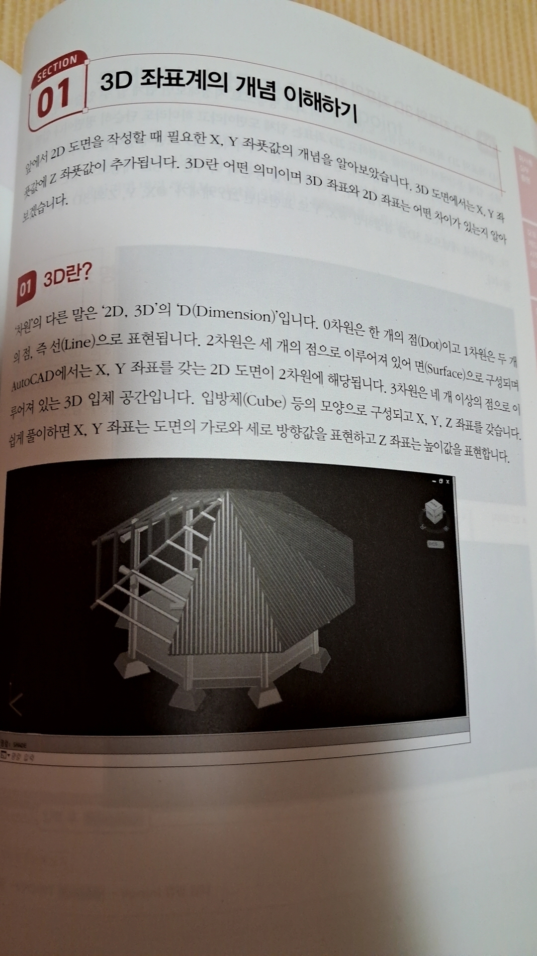 과거에는 도면을 제도 전문가들이 일일이 도구를 사용하여, 세밀한 손재주를 자랑하며 직접 그렸다고 합니다. 우아하면서도 정교한 손놀림으로 설계 도면을 완성하는 모습을 보면 도인 같기도 하고, 사람만큼 정교한 기계가 또 없겠구나 하는 감탄이 나오기도 했죠. 지금은 사람이 아무리 노력해도 따라할 수 없는 정확성과 속도로 도면을 대신 그려 주는 이 오토캐드라는 컴퓨터 프로그램이, 제도사들을 현장에서 상당부분 대체한지 수십 년이 지났습니다. 그렇다고는 하나 이 유용한 프로그램을 제대로 쓰는 데에도 어느 정도의 지식과 능숙도가 필요하며, 때로는 다른 부서의 직원이라 해도 프로그램을 (제한적으로나마) 활용하여 일정 성과를 내어야 할 때가 있습니다. 심미현쌤의 이 책은 이미 여러 차례 개정판이 나왔으며, 기본기를 간결하게 잘 닦아 주면서도, 실무에 필요한 사항들을 빠짐없이 커버하기 때문에 많은 독자들이 참고해 온 두툼한 볼륨의 참고서입니다. (*예스24 리뷰어클럽을 통해, 한빛미디어에서 제공한 교재를 공부하고, 솔직하게, 주관적으로 작성한 후기입니다) 과거 제도사들은 본능적인 감각에 의해, 일일이 눈금을 체크하지 않고도 도면을 척척 완성하기도 했습니다. 그러나 오토캐드의 작업은 3차원 공간을 2차원 평면에 표시함에 있어 철저히 좌표계에 의존하며, 대부분의 오토캐드 교재들도 이 좌표에 대한 설명으로 시작합니다. 17세기 수학자, 철학자 데카르트도 자신이 창안한 좌표계가 이처럼 극적으로 활용되는 상황을 목격한다면 적잖이 놀랄지도 모르겠습니다. 절대좌표는 원점이 고정되었으며, 상대좌표는 원점이 작업 단계에 따라, 또는 유저의 편의를 위해, 수시로 이동한다는 데서 서로 다릅니다. 오토캐드의 두드러진 특징은 작업의 실제를 충분히 감안하여 이처럼 원점을 수시로 바꿀 수도 있게 한다는 점인데, 이로써 도면의 이동, 작업자의 변경 승계 교체, 동시에 여러 작업자들의 참여를 훨씬 원활하게 합니다. 이 교재는 "좌푯값"처럼 정확한 맞춤법을 쓴다는 점에서도 타 교재보다 낫고, 설명도 자세하고 탄탄하게 이뤄집니다. p75 같은 데를 타 교재의 해당 부분과 대조해 보면 확연히 이 점이 드러날 것입니다. 오토캐드뿐 아니라 다른 분야 프로그램에서도 undo는 취소명령, redo는 되돌림명령에 쓰입니다. 그런에데 오토캐드의 쓰임새가 쓰임새다 보니 특히 이 프로그램에서 이 두 기능이 유저들에게는 각별하게 다가올 수 있습니다. p94를 보면 Undo 명령어 그 자체와, 그 단축키인 U가 서로 어떻게 다른지에 대해 실무노트 코너를 통해 설명합니다. 명령행에 U 입력 후 스페이스바를 누르면 (단축키가 대체로 그렇듯) 직전 명령 1회분만 취소되지만, Undo를 입력하면 메인메뉴, 서브메뉴가 나타나 이후 작업을 고를 수 있게끔 합니다. 단축키의 기능으로부터 어느 정도 유추할 수는 있는 사항이라고 해도, 이처럼 교재에서 각잡고(?) 한번 가르쳐 주는 것과, 막연히 그렇게 되겠거니 추측 상태에 유저가 불안정하게 머무는 건 매우 다릅니다. p95를 보면 예시화면에 분명하게 (2색도로) 붉은 표시를 통해 어디를 클릭하라고 짚어 주는 점도 좋았습니다. 두 점을 지나는 원은 다양한 곡률과 반지름으로 여러 개가 그려질 수 있습니다(2차원 평면이라 해도). 그런데 세 점이 주어지면 2차원 평면에서는 단 하나의 원만 특정됩니다. 이는, 원의 데카르트 방정식 일반형에서 x항(일차)의 계수, y항(일차)의 계수, 그리고 상수항, 이렇게 세 개만이 미지수로 둘 수 있기 때문입니다. 미지수가 셋이니 방정식도 세 개가 필요하며 그러려면 세 점에 대한 정보을 알아야 합니다. 교재 p107에 나오듯 (서로 다른) 세 점이 어떻게 주어져도, 오토캐드는 특정한 원 하나를 그려낼 수 있습니다. 물론 사람도 손으로 계산하여 원의 도형방정식을 구할 수 있죠. 대수와 기하를 통합한 르네 데카르트의 위대한 업적 덕분입니다. p191에서는 적절한 크기로 조절하는 Scale 명령어가 설명됩니다. 이런 걸 책에서 설명하는 대로 고스란히 따라해 보려면 한빛미디어 사이트에서 실습파일, 확장자가 .dwg인 것들을 자료실에서 먼저 다운받아야 하겠습니다. 또 심미현쌤이 이 파트에 대해 강의하는 영상도 QR코드를 찍고 볼 수 있는데 예를 들어 지금 이 페이지에 링크된 강의는 4분 57초 분량이며 20강이 무료로 제공됩니다. 혹시 독학을 한다 해도 충분히 습득될 만큼 그 내용이 어렵지는 않지만, 심미현쌤의 차분한 중저음 설명대로 따라하면 더 쏙쏙 머리에 잘 들어오는 게 사실입니다. 오토캐드 교재를 여러 종류 들춰 본 이들은 알겠지만 사실 이 분야가 내용이 그리 어렵지는 않습니다. 그렇다고는 해도 그저 예시화면만 휑하니 띄워 놓고 그냥 따라만 해보라는 식으로 구성한 책들은, 내용이 머리에 잘 들어오지도 않거니와 무책임하게까지 느껴집니다. 반면 이 교재는 그림도 2색도이며 편집이 친절하고, 텍스트 설명이 정확하고 빽빽하게 제공되어 책임감있는 설명이 이뤄진다는 게 확실히 차별과는 점입니다. 많이들 보는 책은 과연 이유가 있네요. #리뷰어클럽서평 #리뷰어클럽리뷰 #오토캐드 #심미현 #한빛미디