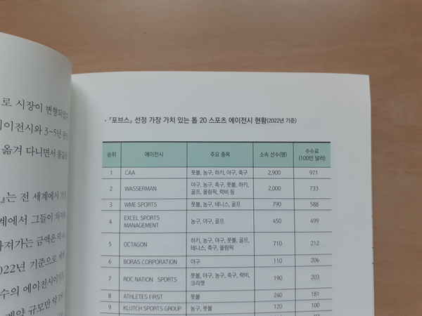 첫째, 지금까지 프로스포츠 선수의 연봉 협상과정에서 당연하게 생각했던 구단과 선수의 불평등한 협상력으로 피해를 볼 수 밖에 없던 선수들의 불이익을 줄일 수 있다.(FA 자격을 얻은 선수 몇 명을 빼놓고) 대부분의 프로스포츠 선수는 연봉 협상할 때 계약서에 있는 중요 사항을 정하게 인식하지 못하고 자신의 이름과 연봉 금액, 계약기간 정도만 재확인할 뿐 계약과 관련한 어떠한 의견을 내는 일이 드물었다. (-30-) 둘째, 선수가 금지약물을 복용하는 등 곤란한 상황에 처해 구단의 도움을 받을 수 없을 때 에이전트가 나서서 선수를 도와줄 수 있다.선수협의회는 리그와의 공식 교섭권이 없기 때문에 선수가 물의를 일으켰을 때 선수를 효과적으로 도와주는 데 한계가 있다. (-31-) 축구 선수가 은퇴 후에 코칭스태프, 해설위원으로 활동하게 되면 에이전트와의 인연은 계속된다. 설기현, 김남일, 송종국, 이영표 등은 감독 미 지상파 축구 해설위원으로 활동 무대를 옮겼지만 여전히 추구 전문 에이전시와 계약해 활동 중이다.(-86-) 현재 101명의 한국 국적의 에이전트가 FIFA 에 등록되어 있다. 이들 중 일부는 이영표, 이천수,박주호 등 국가대표급 선수들의 해외 이적을 추진한 지쎈, 수십 명의 K리그 선수를 거느린 월스포츠, 스퀘어 스포츠, 인스포코리아, 박지성 선수를 해욍에 이적시킨 FS 코퍼레이션,기성용,이청용, 지동원 선수를 해이에 이적시킨 C2 글로벌 등 이미 잘 알려진 에이전시에서 활약하고 있다. (-133-) 한국은 오랫동안 스포츠 에이전트가 활동하기 힘든 열악한 구조이면서,불모지였다. 1980년대~1990년대 ,선동열,최동원선수가 국내에서 활약할 당시, 그들이 해외에 진출하기 위해 큰 어려움을 겪었으며, 소속 구단에서, 두 선수를 해외에 이적하거나, 해외로 진출하는 것을 달갑게 여기지 않았다.특히 롯데 최동원 선수는 선수협 관련해서, 큰 불이익을 받은 바 있다. 스포츠 에이전트 제도가 본격적으로 수면 위에 오른 시기는,해외에서 맹활약한 박찬호 선수의 활약 , 국내 올림픽에서, 대한민국의 위상을 드높였던 류현진 선수가 있었다. 그동안 해외 진출에 걸림돌이 스포츠 에이전시를 통함으로서, 어느 정도 협상에 유리하게 작용하였으며, 선수와 구단 사이의 ㅂ불평등한 협상과정이 어느 해소되었으며, 박찬호 뿐만 아니라, 류현진,설기현, 김남일, 송종국, 이영표 등, 해외에 진출하였던 해외파 야구,축구선수들을 보호하기 위한 조치,그들의 연봉 협상,이적료 협상에 유리하게 작용하기 위한 디딤돌이 되었고,그것이 국내 여론에 적극 반영될 수 있었다. 특히 이정후 선수가 국내 활동을 마무리하고, 최고의 스포츠 에이전시인 스캇 보라스가 조력자로서 ,샌프란시스코 자이언츠 구단과 6년간 1억 1300만 달러의 초대형 계약을 선사시킬 수 있었던 이유다. 책에는 2022년 기준, 포브스 선정 가장 가치 있는 톱 20 스포츠 에이전시로, 6번째인 BORAS CORPORATION 이 있으며, 스캇 보라스의 소속 야구 선수로, 110명이 메이저리그 야구 선수들이 있으며, BORAS CORPORATION 는 수수료로 2억 1200만 달러를 챙겼다. 스포츠 에이저트가 최고의 기량을 가지고 있는 선수들 뿐만 아니라, 연봉 협상에서 구단에 비해 매우 불리한 스포츠 선수들의 권위를 보장하기 위해서, 스포츠 에이전트가 확장되어야 하며,그들이 은퇴 이후의 안정적인 생활과 삶을 위해서, 한국 또한 스포츠에이전트에 대한 부정적인 인식을 바꿔 나가야 한다. 선수들이 구단과 협상력에 서 불평등한 구조에서 탈피하는 것이 급선무다. |