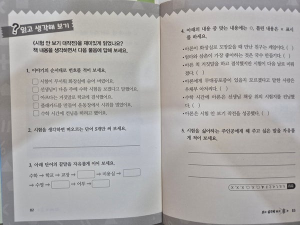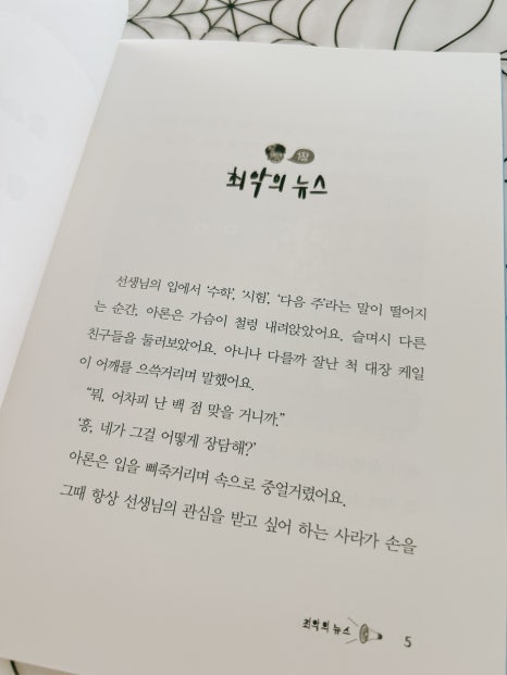 시험을 좋아하는 초등학생이 있을까요? 제목에서부터 흥미로움이 느껴지는 이 책에는 어떤 내용이 담겨있을까요?![]() 주인공 아론은 학교 생활도 잘하고 교우 관계도 원만한 아이예요. 하지만 지난 시험에서 답을 밀려 적어 냈기에 낮은 점수를 받았던 경험이 있기에 시험 때만 되면 엄청 긴장한답니다. ![]() 같은 실수를 반복할까 두려워 불안해하는 아론의 모습은 어린이 독자들이라면 충분히 공감할 수 있을 것 같아요. 피할 수 없는 시험을 안보기위해 아론은 어떤 작전을 세웠을까요? 시험을 앞 둔 아이들의 심리를 고스란히 느낄 수 있는 이 책을 읽어보세요~ 출판사로부터 도서를 제공받아 읽고 주관적인 생각을 쓴 리뷰입니다.