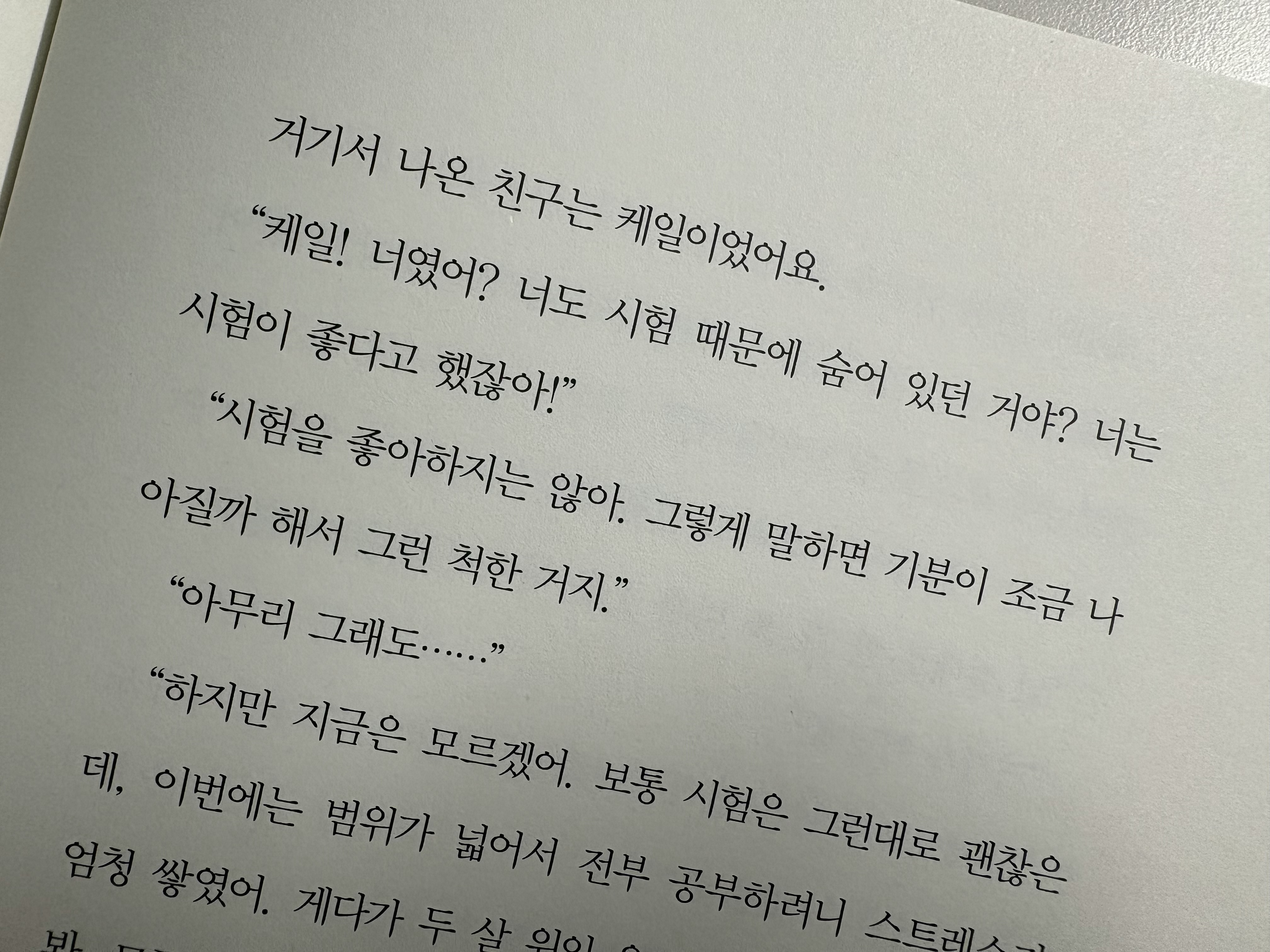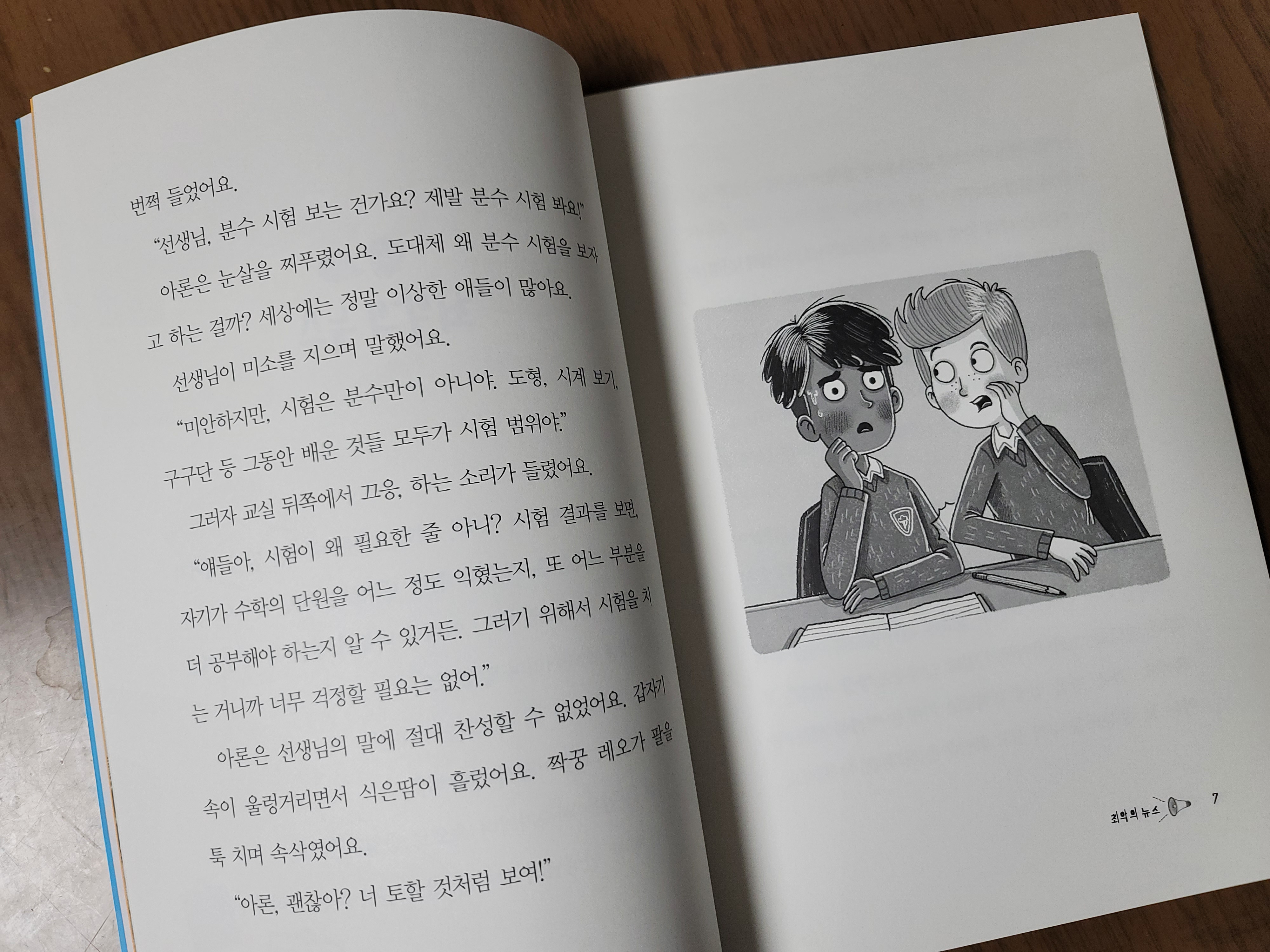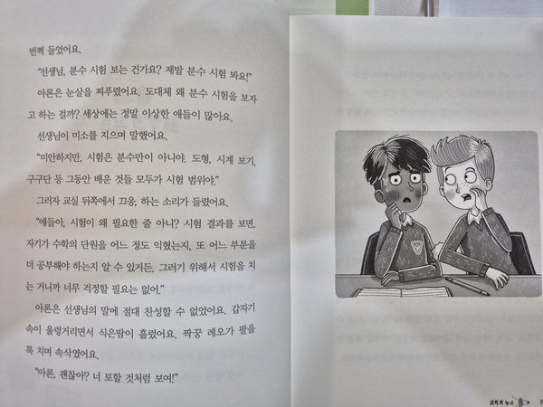 아이는 아직 학교에서 많은 시험을 보고 있지는 않은데요. 가끔 단원평가를 보더라고요. 그렇기에 시험안보기 대작전을 아이와 재미나게 볼 수 있었는데요. 저도 그렇지만 아이들에게 시험은 아무래도 부담감으로 다가오는데요. 그래서 더욱 재미나게 읽었던 니케주니어의 시험 안보기 대작전이에요. 학생들에게 우리는 시험이 싫어요. 시험을 한 보게 해주세요 라는 권리가 있다면 아이들은 어떻게 반응을 할지 궁금하더라고요. 아직 저의 아이는 시험이 싫지만 시험을 학생들이 보지 않아야 한다고 말하지 않는데요. 시험을 보지 않는다면, 아이들의 학교생활을 어떤 모습으로 바뀔지 궁금해요. 시험이란 단순히 아이들과의 경쟁처럼 느껴지지만 그것보다는 자신이 성장하는데 필요한, 한가지의 도구로 받아들인다면, 시험을 준비하고 시험을 치는 과정이 조금은 수월해지지 않을까 생각해요. 많은 시험을 치르고 경쟁을 하고 그 속에서 좋은 점수를 받아야만 자신이 가고 싶은 대학에 진학을 하거나 회사에 입사하는 조건이 주어진다면 그 조건을 채우기 위해서 공부를 하지 않을 수 없죠. 하지만 공부를 하는 진실한 목적은 아마도 더 나은 내가 되고 싶은 마음이 아닐까 해요. 기준이라는 시험이 없다면, 어떤 사람이 어떤 지식을 얼마나 잘 활용할지 알 수 없으니까요. 공부는 시험으로 직결이 되는데요. 이 책을 읽기 전에도 이 책을 읽으면서도 공부를 해야 하냐고 묻더라고요. 아이들은 공부를 왜 해야하는지 너무 궁금하니까요. 괴로운 시험을 피하기 위해 벌이는 아론의 재미있고 유쾌한 작전들을 들을 수 있어서 너무 좋았어요. 과연 시험 안보기 대작전은 성공했을까요? |