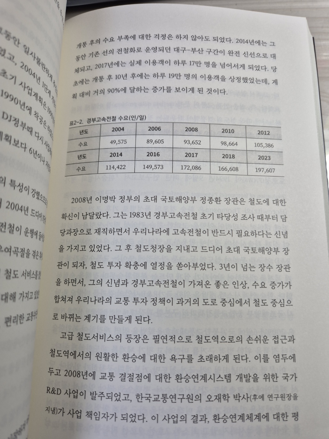 고속전철에 대한 이야기도 빼놓을 수 없다. 1980년대 중반부터 본격적으로 논의된 고속전철 사업은 초기에는 많은 반대와 우려가 있었으나, 이를 극복하고 2004년 경부고속전철의 개통으로 이어졌다. 저자는 고속전철 도입의 배경과 기술적, 정치적 논란을 상세하게 설명하며, 한국 교통사의 중요한 전환점으로서 고속전철의 역할을 강조한다. 이 과정에서 기술력의 부족, 경제적 부담, 정치적 반대 등 수많은 난관을 극복한 주역들의 노력도 함께 소개되어 있어, 교통 인프라 구축의 어려움을 실감할 수 있었다.