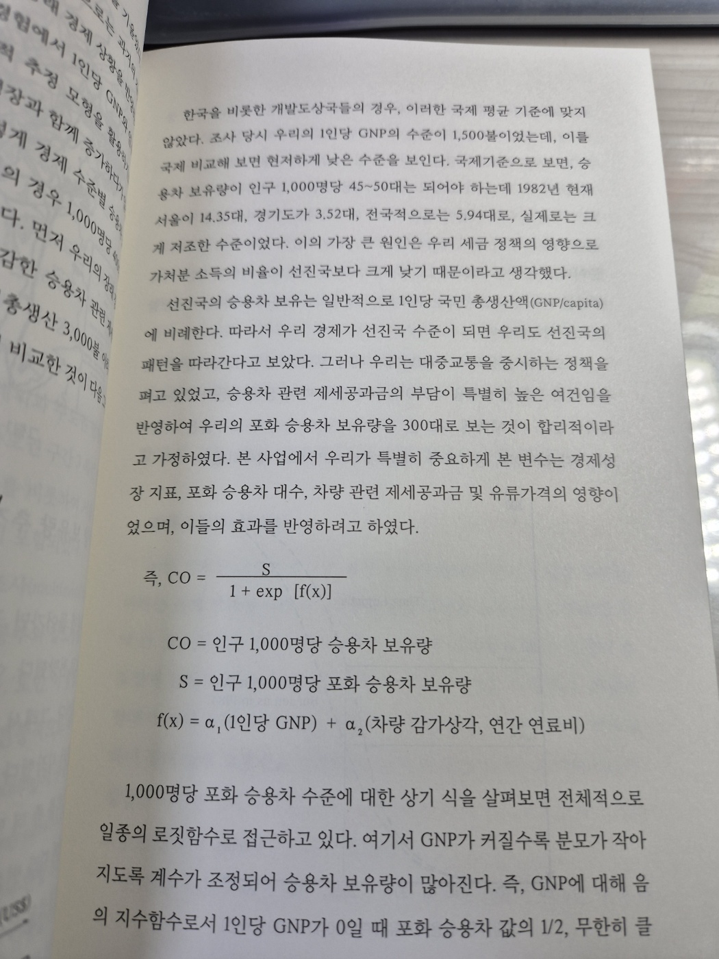 2. 경부고속도로 세계에서 가장 빠른 건설 공정에, 비용이 가장 적게 든 경부고속도로의 건설에 대해서 처음에는 야당의 극렬한 반대 주장이 많았는데 한일회담의 타결로 재원이 확보되어 1967년 건설계획이 발표되고, 2년 5개월 뒤 1970년 7월 7일 개통된 순수 우리의 힘으로 설계와 시공을 담당한 제1호 국산 고속도로였다. 덕분에 5시간이면 전국이 일일생활권이 되었지만, 선진국과 비교하면 부족한 부분이 많았다. 훗날 외국 전문가들은 「철도노선 전문가가 설계한 노선 같다」라는 평을 했다. 경부고속도로가 개통된 1970년에는 전국 13만 대가 고작이고 전체 교통량의 60% 이상이 화물차로 산업도로의 성격이 강했다. 연이어 경제개발 정책까지 성공하면서 농촌의 젊은이들이 도시로 몰려들면서 명절만 되면 귀성인파로 도로가 몸살을 앓았고, 철도와 고속버스까지 귀성인파를 나누어 맡았다. 이후 1980년 광주사태와 제2차 오일쇼크로 경제 침체기가 있었으나 이듬해부터 세계적 경제 호황이 다시 시작되었다. 1985년에는 최초로 차량 보유 100만 시대를 맞이했지만 명절마다 거대한 교통혼잡으로 이어져 고속도로는 거대한 주차장이 되어버렸다. 20년 후 우리나라의 자동차 보유량을 예측할 때 선진국 경제의 포화율을 차입해 포화율 기준 수평적 관계식으로 예측했는데 현재와 크게 다르지 않다.