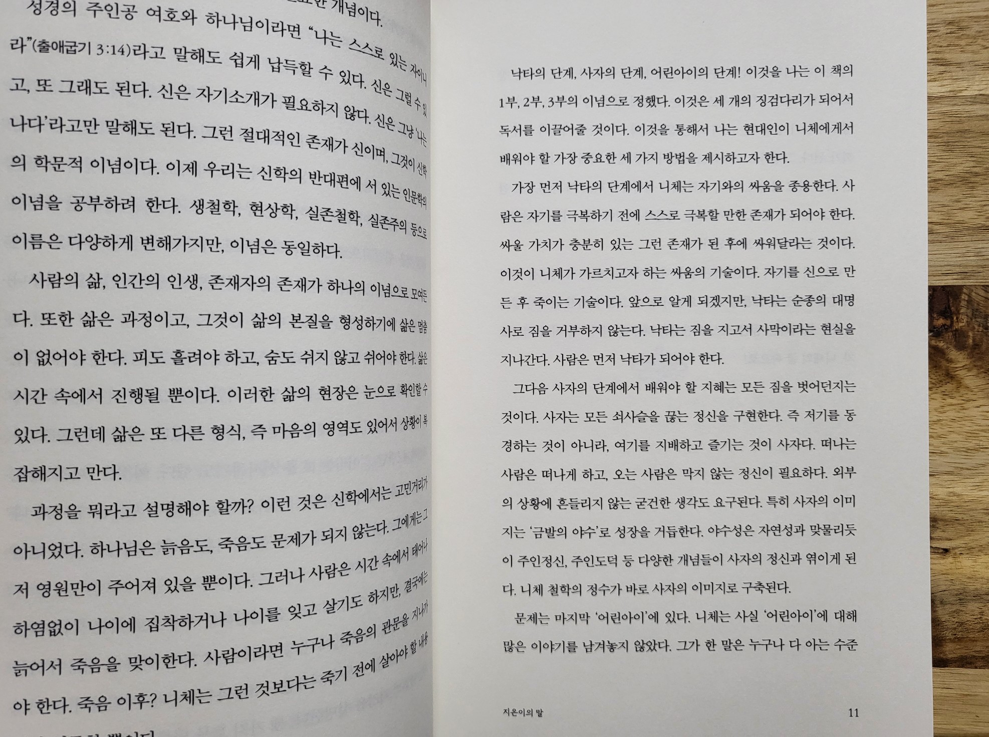 니체는 마치, 현대인이 앞으로 앓게 될 모든 정신적 고뇌를 혼자 도맡아 선제적으로 앓아 내기라도 한 듯, 진정한 초인이라고 할 수 있는 철학적 천재입니다. 사람은 나이가 들면 그에 걸맞게 성숙한 세계관이 몸에 배어야 하는데, 니체는 그저 평범한 사람이 일생을 두고 한 번도 맞닥뜨리지 못할 추싱적인 난제를 다룬 딴세상의 신선이 아니라, 어른이라면 누구나 골머리를 앓고 갈등했을 만한 이슈에 대해 감각적이고도 직관적인 언어로 그 해명을 시도했기에 우리에게 더욱 친숙하게 다가옵니다. 그러나 지난 시대의 독일인이기에 한국 독자에게는 여전히 거리감이 있을 수 있는데, 저자 이동용 박사님이 더욱 쉽고 일상적인 설명으로, 더 멋진 어른이 되고 싶은 우리들에게 속시원하게 풀어 주십니다. (*출판사에서 제공한 도서를 읽고 솔직하게, 주관적으로 작성한 후기입니다) 사자도 자신의 먹잇감이 된 동물에 대해 사냥을 마치고 경멸감을 느낄까요? 이 책 p79에서 <차라투스트라....>를 재인용한 구절이 잘 설명하듯, 사람은 무엇인가에 대해 경멸을 표출하는, 좀 독특한 감정 성향을 지닌 존재입니다. 그 경멸감이란 약하고 무능하고 열등한(그렇게 판단되는) 무엇인가에 대해 느끼는 단순한 우월감일 수도 있고, 나 자신이 저런 무기력하고 위험한 상태에 머물러 있으면 안 되겠다는 어떤 위기감이 그리 발현된 것일 수도 있습니다. 무엇이 되었든 간에, 대체로 인간은 (만약 그가 성숙한 어른이라면) 그런 경멸감을 느끼는 자신에 대해 그리 편한 태도를 취하지는 않습니다. 만약 약한 타자에 대한 경멸감이라면, 아 내가 이래서는 곤란하겠다며 비겁한 자신에 대해 책망할 줄도 압니다. 만약 내 자신에 대한 경멸이라면, 그게 경멸감 같은 낮은 차원의 감정에 계속 머물게 하지 않고 더 높은 차원으로 오르게 스스로를 재촉할 줄도 압니다. 그러나 니체는 이런 경멸감에 대해, 스스로를 애써 부정하지 말고 좀 더 솔직해질 것을 권합니다. 일단 자신의 감정에 솔직해지는 건 그 자체로 정신 건강에 좋습니다. 어떤 감정이 솟아오를 때 일일이 이를 성현, 석학의 가르침에 대응하여 더 고상한 무엇으로 치환하는 건 대단히 피곤할 뿐 아니라 아무나 수행할 수도 없는 과업이라고 하겠습니다. 니체는 구태여 감정을 속일 게 아니라, 있는 힘껏 한계에 부딪혀 과연 내 자신이 경멸받아 마땅한 저 다른 패배자들과 같아질지, 아니면 그 한계를 뛰어넘는, 이전의 나와는 다른 차원으로 도약할지, 현실의 좌표에서 어디 나 자신을 제대로 점검해 보라고 합니다. 어떤 안온한 울타리 안에서 나 자신을 과잉보호할 게 아니라, 승리자와 패배자 사이에서 과연 내가 어느 그룹에 속할지 칼 같은 잣대로 숨김없이 회피않고 마주쳐 보라고 외칩니다. 독일어의 Wildnis, 영어의 wildness도 우리말로 옮길 때 오해를 사기 좋은 단어들입니다. p158에서 저자께서 잘 설명하시듯이, 이걸 구태여 황야 등으로 옮기기보다, 야생, 야만, 자유분방 등을 뜻하게 번역하는 편이 좋겠습니다. 그러나 무엇보다, 니체의 심상에서 사자가 궁극적으로 드러내는 바는 바로 "자유"입니다. 사자는 야생에서 절대 강자이기에 그 무엇에도 예속되지 않으며, 어떤 강제력 앞에 쉽게 굴할 필요도 없습니다. 물론 사자 역시 자신보다 강하거나 덩치가 큰, 기린, 코끼리, 코뿔소 등 앞에서 때로 목숨을 건 사냥을 감행해야 합니다. 그러나 비겁하게 타자의 폭력 행사 앞에서 물러날 필요까지는 없기에, 사자의 삶은 호쾌하고 사내다우며 행여 일격을 당하고 사바나의 그늘에 피흘려 눕더라도 그의 여생에 아무런 회한이 없습니다. p159에 잘 나오듯, 끝없이 이어지는 도전의 사슬을 지혜롭고 끈기 있게 풀어나갈망정 운명 앞에 체념하거나 비참하게 좌절하지 않습니다. 이것이 사자의 삶이요, 또 자유로운 인간의 지향이라야 합니다. p170에 잘 나오듯, 니체는 흔히 "신은 죽었다"는 말을 한 철학자로 알려졌습니다. 자 그럼 신이 죽었으니, 악마는 세상 살판났다는 듯이 설치는 세상이 되었다는 뜻일까요? 악마가 그토록 득세하게 되었다면 우리 인간은 윤리 도덕은 땅바닥에 갖다버리고 악마의 길을 따르면 그만일까요? 니체는 그런 말을 하고자 한 게 아니라, 그리스도교가 은연중에 사람들의 마음에 심은 패배주의, 수동적 삶, 세상의 악에 끌려나니며 마침내 굴복할 수밖에 없는 노예적 평화주의 따위를 비판하려 들었던 것입니다. 니체가 말한 신이 죽었다는 건, 사문화한 규범에 더이상 기대지 말고, 십계명이나 예수 그리스도의 가르침이 나를 지켜 주겠거니 막연히 의지하지 말고, 내 인생은 내가 싸워서 쟁취하고 개척해 나간다는 의지를 다지라는 뜻으로 우리는 새길 필요가 있습니다. 그게 바로 니체가 말한 자유인의 삶이니 말입니다.