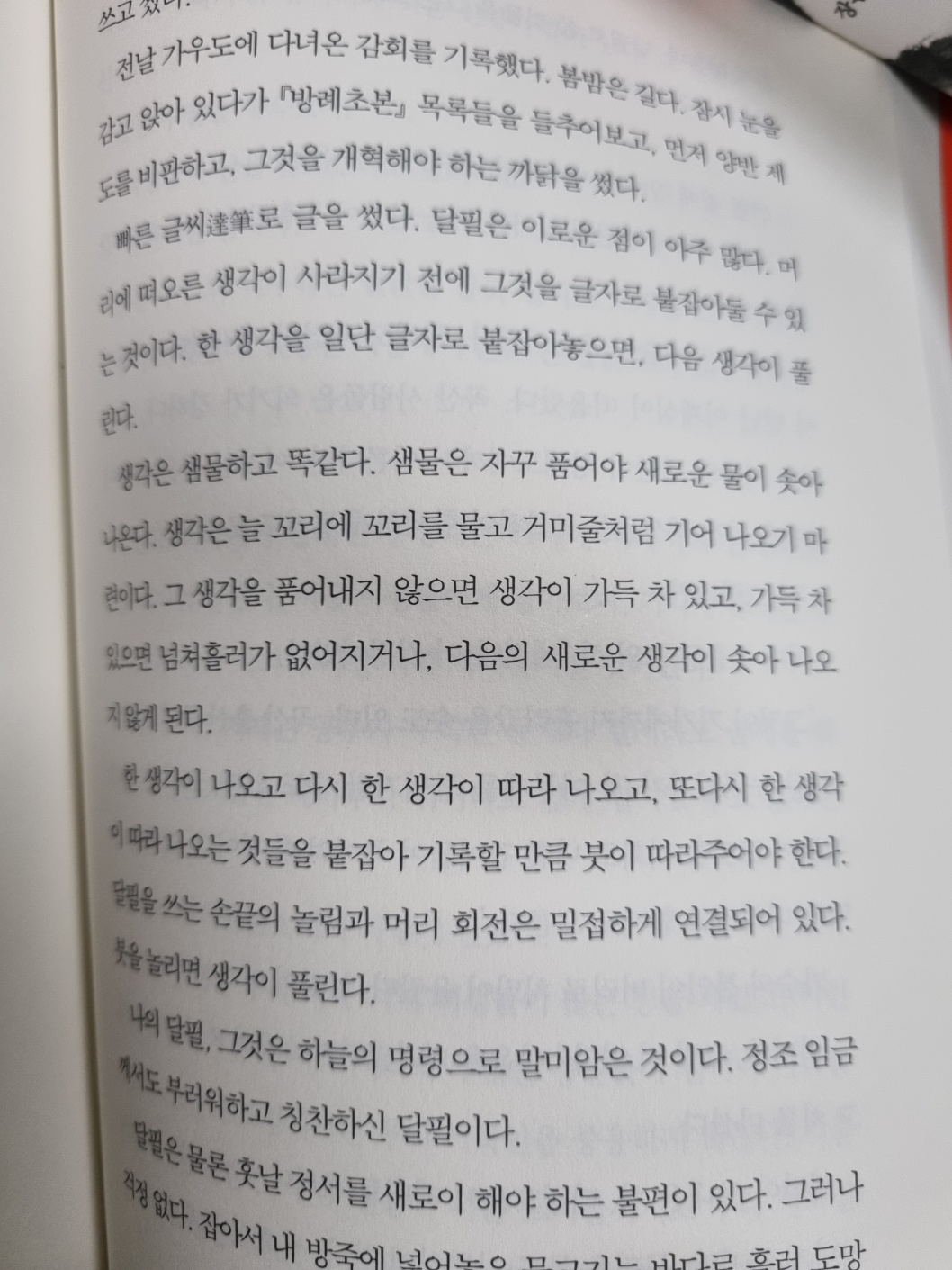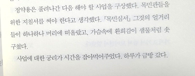이 책은 단순히 정약용이라는 위대한 학자의 삶을 나열하는 데 그치지 않고, 그의 내면적 고뇌와 철학적 성찰, 그리고 시대적 갈등을 생생히 그려내고 있다. 책을 읽으며 나는 그의 삶이 단지 역사 속 한 장면이 아니라, 현재를 살아가는 우리에게도 여전히 소중한 메시지를 전달하고 있다는 것을 깨달았다.