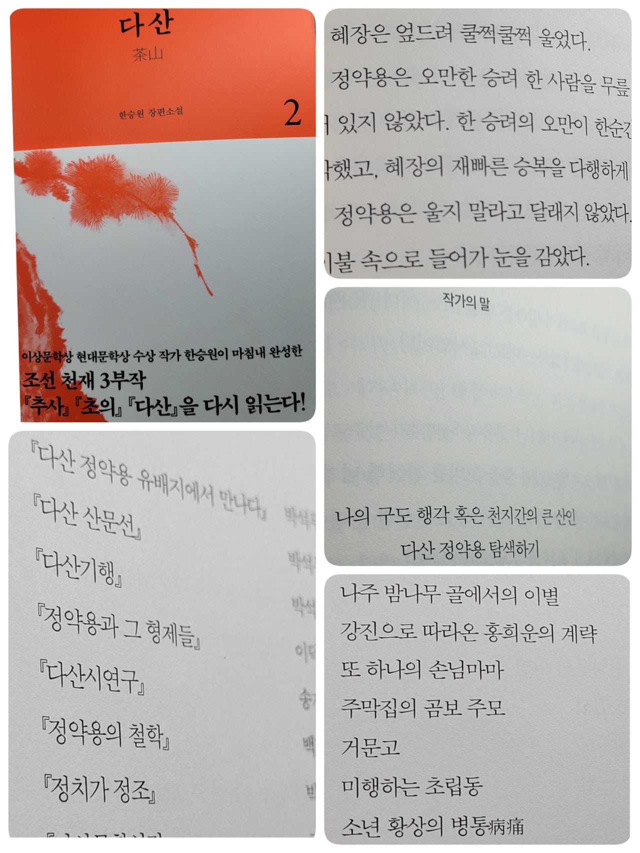 다산1을 비바람 보며 읽어낸 며칠 뒤 하늘이 맑다. 다시 동네 찻집 창가 자리를 잡고 앉아 다산2을 마저 읽어냈다. 장편이라 두 권으로 나눈 것일뿐 다른 의미는 없는 듯. 다산2는 황사영백서로 이야기를 이어간다. 전라도 강진으로 기약없는 유배를 다시 떠나게 된 배경이 된 사건이다. 학교 다닐 때 천주교 박해. 황사영 백서. 이렇게 키워드만 줄곧 외웠던 기억이 난다. 다산은 한때 천주교(서학)에 귀의했던 것이 분명해 보인다. 다만 당시 천주교인은 극형을 당하던 때라 적발되면 폐족이 될 수도 있었다. 때문에 다산은 그의 형 정약종과 달리 자신의 신앙을 유보하는 상소를 쓴다. 죽임은 겨우 면했지만 정약용과 그의 형 정약전은 유배형을 받는다. 자산어보로 이름을 남긴 정약전은 흑산도에서 끝내 유명을 달리한다. 강진에 자리잡은 다산은 유학자로서 저술과 제자 훈육은 물론 불가의 인물과도 교유한다. 혜장 스님과 초의 스님이 그들이다. 근원을 탐구하는 그들은 각자가 신봉하는 유학과 불교(경)을 고집하지 않는다. 한승원 작가의 필치로 그려낸 그이들의 선문답 같은 차담을 엿듣고 보다 보면 2세기 전 강진의 어느 산자락에 가 있는 듯한 아련함에 잠기게 된다. 다산과 혜장, 초의 선사가 밤을 새워가며 논쟁-감정으로 싸우는 것이 아닌-을 하는 광경을 그려보면 오늘날 행태에 자연스럽게 비교가 된다. 다른 것과 틀린 것을 다투는 수준을 뛰어넘는... 취한 듯 책장을 넘기다가 보면 아쉬운 점도 있었다. 바로 모르는 단어가 자주 나오는데... 국어사전이랑 포털 어학사전을 뒤져도 안나오는 낱말이 꽤 있었다. 편집자 주석이나 말미에 부록으로 단어풀이를 해 주는 배려가 아쉽긴 했다. 더해 한자 병기가 필요한 단어들...특히 조선시대 관직명이나 당시에만 사용했을 용어는 한글로만 표기되었을 때 그 뜻을 밝히 알기 어려웠다는 평범한 독자의 아쉬움이 있다. 그럼에도 다산이 걸었던 인생 역정을 가야금 가락처럼 묵직하게 같이 걸을 수 있는 책 읽기였음에, 여운이 크다. *** *** 정약용은 생각했다. 불교인들의 '저절로(본연지성)'란 것이 사실은 저 거래와 대립을 바탕으로 이루어진다. 유학 선비들이 천주교를 신앙하는 사람들과 마찬가지로, '천명'에 따른 사업으로써 스스로의 마음을 다잡는다면, 스님들은 저 자기와의 거래와 대립을 참회라는 과정을 통해 마음을 청정하게 다잡는다. (155쪽) 그녀가 거문고를 밀어놓고 다시 술을 따랐다. 둘이 다 취했다. 그녀의 몸과 마음은 일렁거리는 밤바다가 되어갔고, 그는 그 밤바다 여기저기를 밀행하고 있었다.(182쪽) 울고 또 울고 하다가 깨어보니 꿈이었다. 꿈이 너무 허망하여, 그는 새삼스럽게 천장을 쳐다보면서 꿈에 본 형님의 모습을 떠올리며 울었다.(201쪽) |