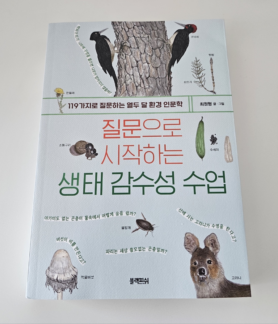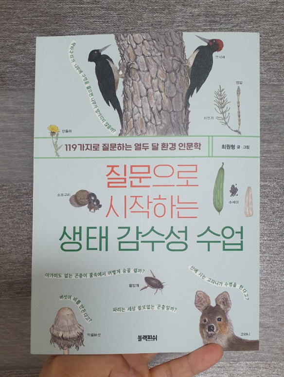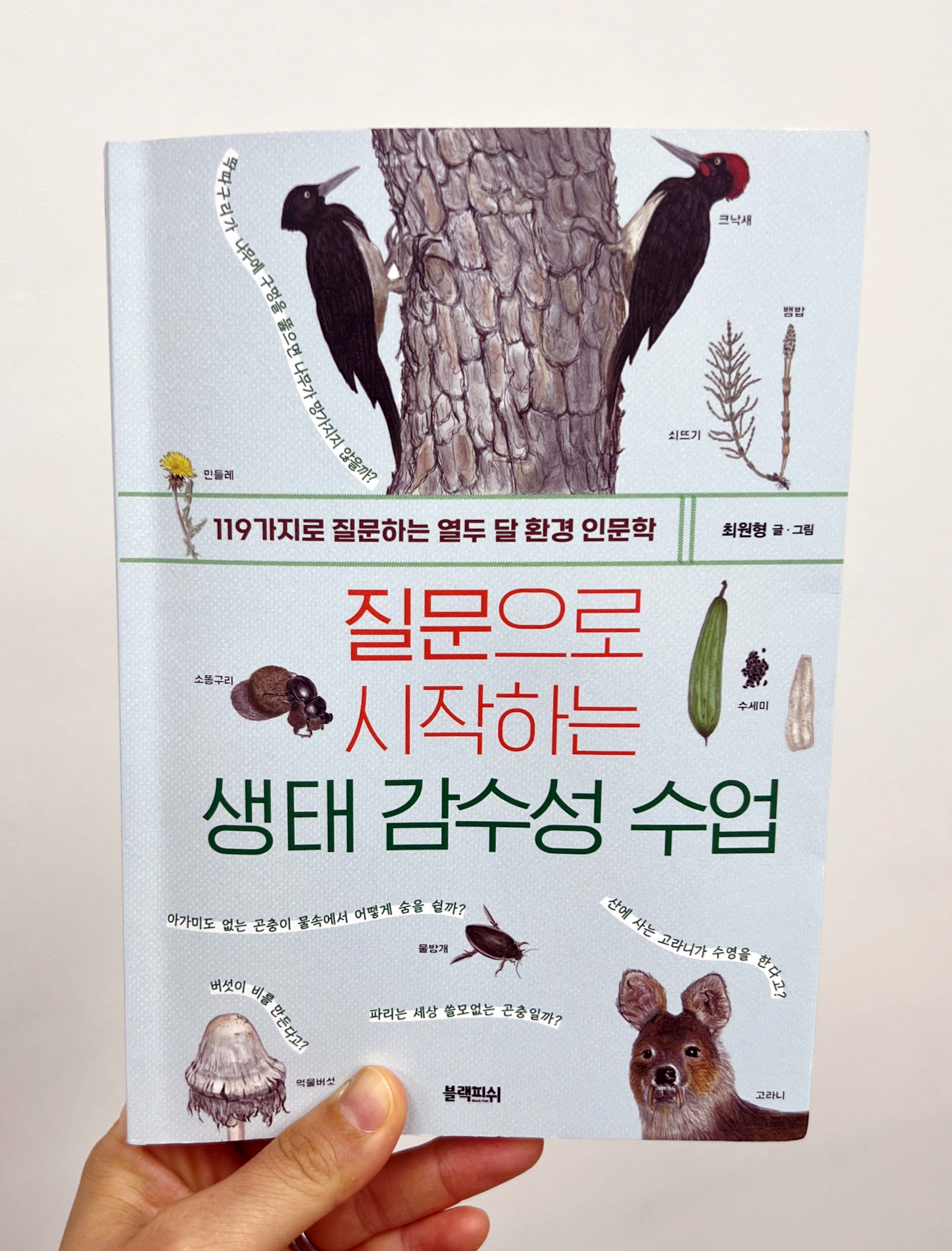 ![]() 다양한 생물의 생태를 알수록 우리의 삶도 여러 삶 가운데 하나일 뿐이라는 자각이 들고, 바로 이런 자각이 생태 감수성의 출발이 아닐까 해요. 인간 중심의 사고에서 벗어나 지구에 살아가는 생명 하나하나가 어떻게 살아가는지 알면 알수록 그들이 온전히 살아갈 수 있길 바라는 마음이 생기고 그들의 서식지를 지켜 주고 싶은 간절한 마음이 들게 됩니다. '질문으로 시작하는 생태 감수성 수업'의 저자 최원형 작가는 자연 탐구자로서 생긴 궁금증에 대한 답을 찾는 과정에서 수많은 오해가 이해로 바뀌면서 역자사지의 마음의 길이 생겼다고 해요. 떠오르는 질문에 스스로 답을 찾는 과정에서 수많은 오해가 이해로 바뀌었어요. 이 책의 가장 큰 특징이자 장점이 이 점이라고 생각해요. 1년 12달 자연 생텨 현상에 대해 질문을 던지고, 답을 찾는 과정에서 과정에서 생태계 원리를 둘러싼 과학적 지식 뿐만 아니라, 묻고 답하는 과정을 통해 책을 읽는 독자도 함께 이해를 하게 만들게 한다는 점이예요. 꼬리에 꼬리를 무는 119가지의 능동적인 질문을 따라가다 보면, 새로운 사실을 만나게 되고 내가 알던 그 생물이 예전의 생물로만 보이지 않게 되니 말이죠. ![]() 1년 12달, 달별로 12개의 챕터가 나뉘어져 있어서 계절에 따른 생물 이야기를 살펴볼 수 있어요. 누구나 한 번쯤 생각해 봤을 질문부터 예상하지 못했던 질문까지 그에 대한 해답을 답을 제시해 주면서 생태계의 중요성을 말하고 있어요. ![]() '질문으로 시작하는 생태 감수성 수업'를 읽으며 제가 흥미로웠던 질문들이에요. - 하우스 비닐은 투명한데 밭에는 왜 검정 비닐을 씌울까? - 사투리 쓰는 매미도, 새처럼 아름다운 소리로 우는 매미도 있다고? - 갈등이라는 말이 식물에서 유래했다고? - 길고양이에게 먹이를 주는 일은 생태적일까? 사투리 쓰는 매미도, 새처럼 우는 매미도 있다고? 매미가 사투리를 쓴다니 너무나 신기한 일이죠. 매미도 종류에 따라 우는 소리가 달라요. 참매미는 "맴맴 매에엠~", 애매미는 "쓰름쓰름~", 참깽깽이매미는 "지이이이이이~"로 같은 매여도 육지에 사는 매미와 섬세 사는 매미소리가 다르다고 해요. 매미소리 연구가인 윤기상 박사의 연구에 따르면 육지와 울릉도에 사는 애매미 소리에 차이가 있다고 합니다. 울릉도 애매미 소리가 조금 더 단순하다는데요. 육지에서는 경쟁이 심하니까 짝 찾기에 유리하도록 자기만의 개성적은 소리를 내게 진화했다고 해요. ![]() '더 알아보기'와 '관찰하기'를 제공하여 배경지식도 더욱 탄탄하게 쌓을 수 있어요. ![]() ![]() 질문을 하는 것은 주체적으고 능동적으로 살아가는 것이죠. 나를 포함해 모두가 살고 있는 세상에서 많은 생명들과 조화롭게 살아가기 위한 '질문으로 시작하는 생태 감수성 수업'의 질문을 통해 이해하는 마음을 배울 수 있을 것 같습니다. 생태 감수성을 깨울 수 있는 시작은 '질문으로 시작하는 생태 감수성 수업'의 질문이예요. 블랙피쉬 출판사로부터 도서를 제공받아 읽고 쓴 리뷰 입니다. #질문으로시작하는생태감수성수업, #블랙피쉬, #최원형, #환경인문학, #생태감수성, #질문생태책 |