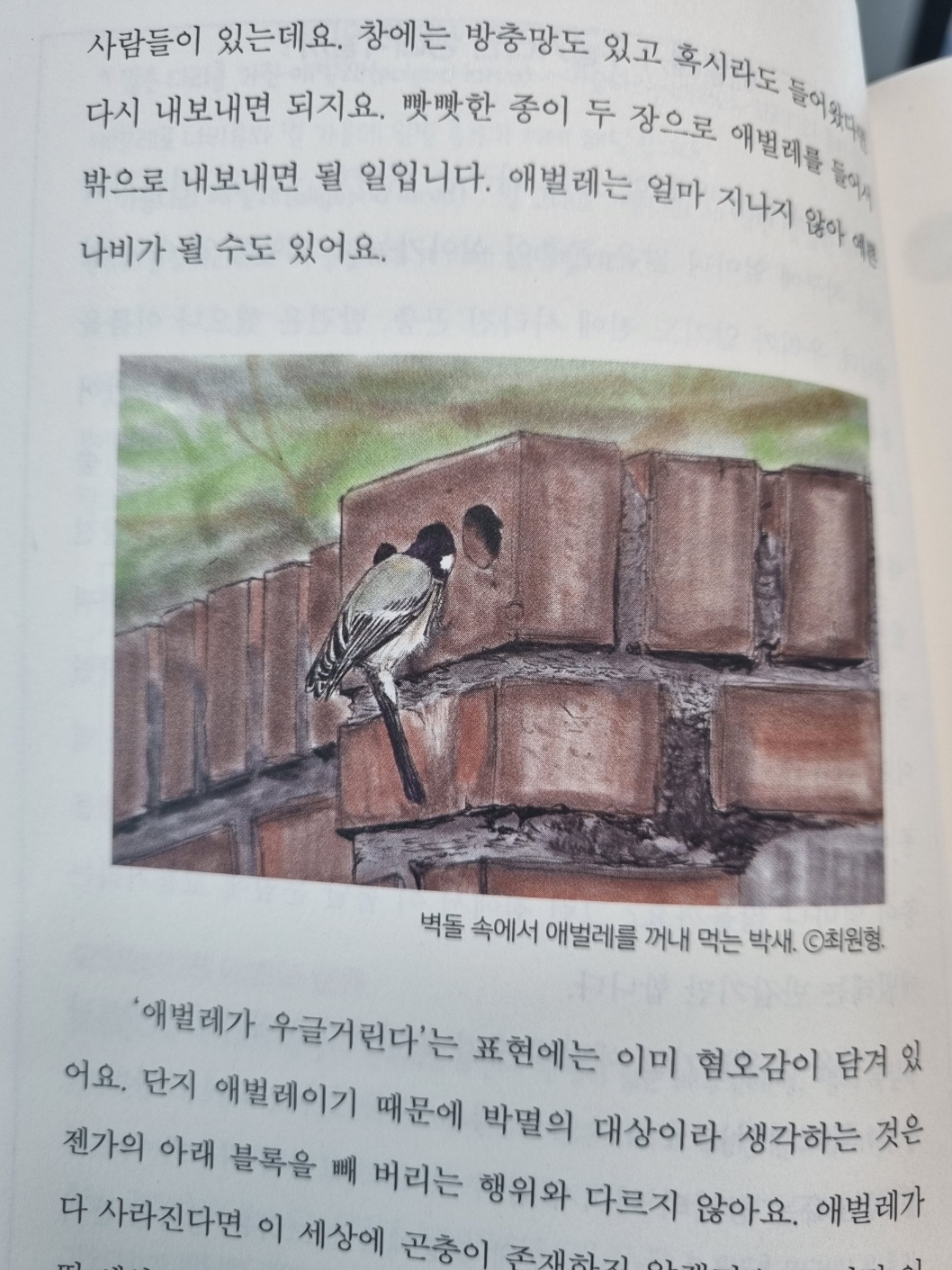 자연적인 숲의 규모를 더 키워야 한다고 강조합니다. 우리나라랑 위도가 비슷한 미국의 메릴랜드주에서는 벌에게 좋은 나무 여섯 종을 소개했는데요. 그 가운데 우리나라에 흔한 벚나무, 산딸나무, 참나무, 단풍나무가 있어요. 메릴랜드주의 발표대로라면 현재 우리 숲에 살고 있는 이 나무들은 그대로 두는 게 벌에게 가장 좋은 거 아닌가요? 왜 꿀 생산을 위해, 꿀벌을 위해 숲의 나무를 바꿔야 하는 거예요. 다양한 나무와 어울려 살아가던 수많은 종류의 야생벌들이 몇 가지 나무로만 이루어진 숲에서 지속 가능하게 살아갈 수 있을까요? 꿀만 많이 생산하면 좋은 숲일까요? 우리가 생각하는 좋은 숲이란 대체 어떤 곳이어야 하는 걸까요? (114쪽)