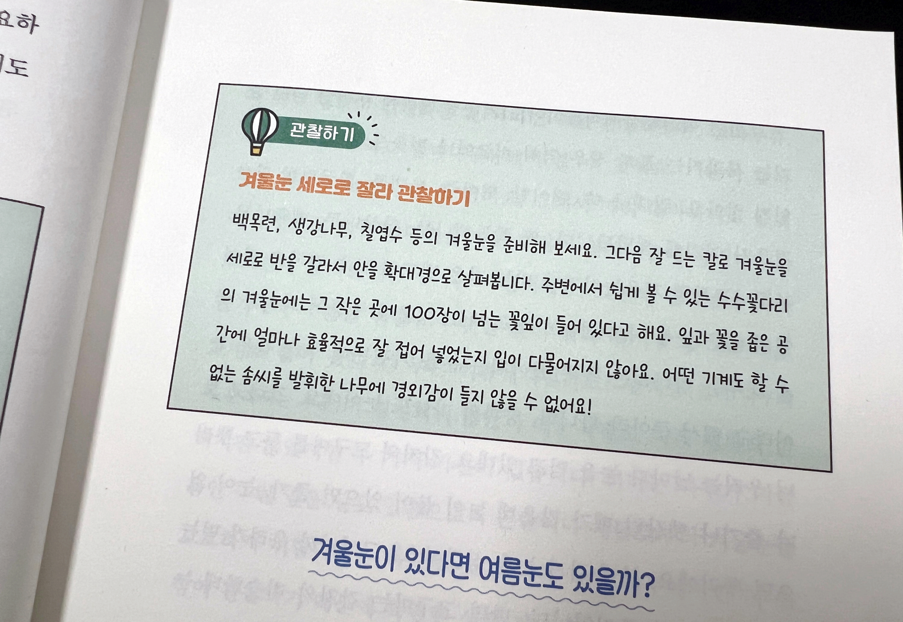 1월부터 12월 볼 수 있는 생명들에 대한 119가지 질문! 관심과 관찰에서 나오는 질문들로 주변 생물들에 대해서 알아봅니다. 사소하지만 궁금했던 점들을 알아가다보면 생물들이 살아가는 이유, 생물들이 각자 돕고 도우며 살아가는 모습, 단순 생물에 대한 정보만이 아니라 뉴스를 통해 들었던 사건들과도 연계해서 이야기를 풀어주시기에 조금 더 우리의 삶과 와닿기도 했습니다. 아이들의 질문 학생들의 질문에 답하기에도 아주 좋고요 생물에 대한 관심을 쭈욱 이어나가기에 단단한 받침이 될 만한 책이라고 생각합니다! #최원형#질문으로시작하는생태감수성수업#생태감수성수업#과학도서추천 |