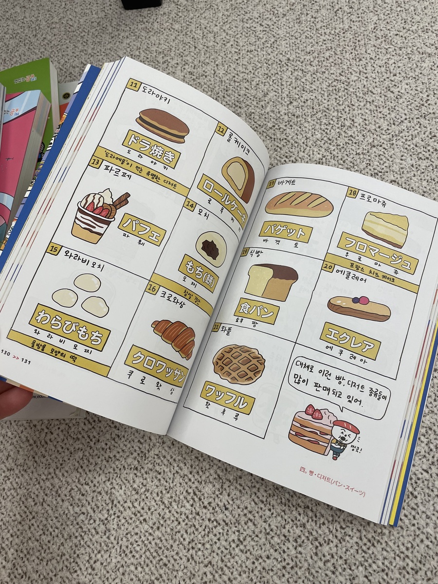 일본여행을 앞두고 있는 분께 적극 추천하고픈 책!!! 아이가 학교에서 듣고와서는 꼭 사달라고 했던 책인데 처음엔 긴가민가했다가 지금은 같이 재미있게 보고 있네요~일본여행중에 꼭 쓰일만한 단어들과 대화로 가득 차 있어 정말 굿굿!!! 캐릭터도 너무 귀엽고 그림 자체도 너무 사람스럽니다.