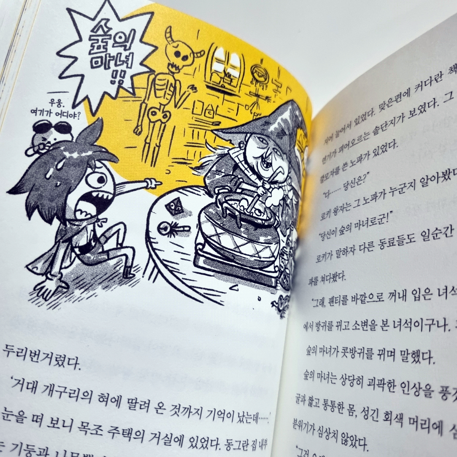(강경수 글/그림, 시공주니어) 아침 바쁜 등교준비 시간에 자꾸 퀴즈를 내는 아이! 왕자의 이름은? 핀도르는 누구? 핫독은 사람일까? 어휴...그렇게 재미있었니? 로키 왕자의 두 번째 모험이 시작되었다. 1권<끝나지 않는 겨울>에서 드로즈 왕국의 길고 긴 겨울을 끝내기 위해 모험을 떠난 로키왕자가 2권<숲의 마녀와 마공 법사>에서는 또 어떤 웃음포인트를 가득 안고 모험을 떠날지 기대가 된다. 서로의 발목에 묶인 마법으로 떨어질 수 없는 엘프 바냐와 로키왕자는 그 마법을 풀 수 있는 숲의 마녀를 찾아서 새로운 모험을 떠난다. 그 길에서 만난 카를 대공이라는 고양이, 샤샤라는 맛있게 생긴 멧돼지 등 점점 늘어나는 원정대원들이 과연 로키 왕자에게 어떤 도움을 줄 수 있을까?