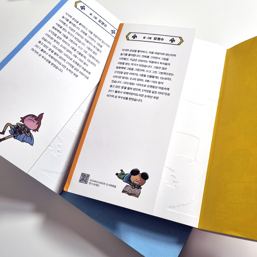#서평단 #출판사제공도서 #시공사 #시공주니어 모험을 통해 소통과 연대를 배우고 성장하는 이야기를 펼치고 싶었다는 베스트셀러 <코드네임> 시리즈, 강경수 작가님의 새로운 판타지 모험담, 표지도 제목도 귀여운 드로즈 왕국 원정대!! ![]() 1,2권을 두고 보다보니... 1권은 파랑, 2권은 노랑이 포인트 칼라이다! 표지에도 반영되어 있고 속지도 포인트 칼라를 넣은 2도 인쇄로 해서 각 권이 더 특별하게 느껴지는 기분. ^^ ![]() 초6 형이 노랑 포인트의 2권을 먼저 읽고 있어 다른 책 읽으며 순서 기다리는 초2 동생.ㅎ ![]() 낙서와 공상을 좋아하는 파랑이 아빠, 강경수로 소개하면서 1권엔 로키 왕자, 2권엔 핫독이 그려져있다. 장편 시리즈 동화 뿐 아니라 그림책들도 여러 권 쓰신 작가님. ![]() 바지 위에 실크거미 팬티 세 장을 겹쳐 입는 로키 왕자가 사는 곳은 포포 대륙의 드로즈 왕국. '오래된 악몽에서 깨어나면 강철과 같은 굳건한 팬티가 왕국을 구해 내리라.' '세상에 나쁜 팬티는 없다. 다만 구멍날 뿐이다.' 1권에서는 드로즈 왕국에 봄이 오지 않아 겨울 마녀를 찾아 떠나게 되고 2권에서는 엘프 바냐와 마법의 끈으로 묶여 마법을 풀기 위해 숲의 마녀를 찾아 떠난다. 둘 다 핀도르의 조언으로... ![]() 2권에서 숲의 마녀를 찾으러 갈 때도 롤리와 핫독은 동행하였고 마법으로 서로 발이 연결된 엘프 바냐도 같이 갈 수 밖에 없었다. 가는 길엔 고양이 카를 대공과 멧돼지 샤샤가 흥미진진한 사연들로 함께가게 되었다. 그런데... 겨울 마녀와 숲의 마녀가... 자매! ![]() ![]() 고블린이 사는 위치를 알려 준 대가로 숲의 마녀가 준 오렌지색 오팔까지 받아간 노인은 1편에서도 결정석을 받아갔더랬다...! 1편에선 행방불명 된 지 백 일째였던 드로즈 왕국의 국왕 밴드는 2권에선 무사히 돌아왔지만~ 왕자의 모험을 반대했었다. 아직은 위험하다며. 하지만 말 못할 저주도 있어서 더욱 그런 듯. 차차 이유가 밝혀지면서 재미가 더해질 거 같다! ![]() 일행들과 힘을 합쳐~ 대장 크론이 이끄는 고블린 무리들을 숲에서 쫓아내는데 성공했다. 모험을 통해 성장하는 로키 왕자의 이야기에 함께함의 소중함까지 재미나게 넣어주신 작가님! ![]() 다음 권을 예고하는 페이지에 등장한 강철 같은 털을 지닌 큰 뿔이 난 덩치. 한 쪽 뿔은 잘려있고 입은 뾰족뾰족. 3권에선 정체가 밝혀지려나~~~ 역시나 기대를 저버리지 않으시는 강경수 작가님!!200페이지가 넘는 긴 동화이지만, 귀여운 삽화들도 가득하고 스토리도 재미있어 술술~ 읽히는 <드로즈 왕국 원정대> 시리즈이다. #드로즈왕국원정대 #강경수 #끝나지않는겨울 #숲의마녀와마공법사 #초등독서 #초등책읽기 #아동문학 #시리즈동화 |