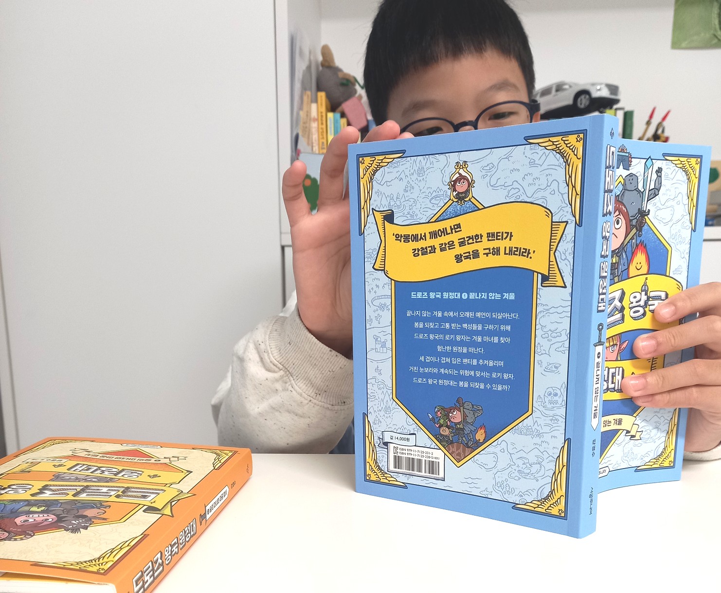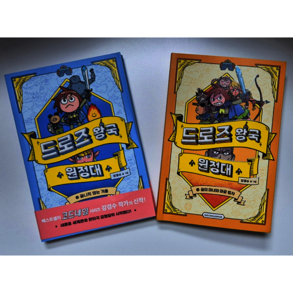 드로즈 왕국원정대2편 드디어 출간 되어서 읽어보게 되었습니다. 1편이 나온 지 거의1년만에 2편이 나와서 아이가 정말 반가워하더라고요~ 강경수 작가님팬인 딸아이는 강경수작가님책은 무조건 챙겨봅니다. 믿고보는 강경수작가님책! 저희 초2아이의 최애 책은 코드네임인데 집에서 닳고 닳도록 몇번을 봤는지 모르겠어요~ 코드네임을 이어받아 이번엔 드로즈왕국원정대로 그 자리를 이어갈 것 같아요! 읽는내내 키득키득 정말 재밌어합니다. 드로즈왕국원정대2편도 역시 함께 모험을 떠나게 되는데요 그 안에서 펼쳐지는 여러 사건들, 이야기로 우정, 협동심, 용기 등 아이들에게 자연스럽게 녹아드는 과정을 함께 볼 수 있을 것 같아요! 판타지적인 요소들이 가득한 이번 2편도 저도 아이도 즐겁게 읽었습니다. 고블린, 엘프, 여러모험들~아이들이 좋아할 수 밖에 없는 것 같아요. 초2아이의 느낀점 강경수 작가님 책은 일단 재밌는데 중간 만화그림들로 웃긴장면을 잘 표현해서 더 재밌다고합니다.또 여기 나오는 캐릭터들이 은근 코드네임 캐릭터와 비슷해서 더 끌렸다고 합니다.^^;; 책 속에 나오는 캐릭터들중 엘프들이 나오는데 다크엘프의 행동이 매우 수상하다고하네요 ㅋㅋ 가장 재밌던 장면은 드래곤이 로키 옷을 홀라당 태웠는데 드로즈만 남았던 장면이 제일 재밌었다고합니다. 강경수 작가님의 유머는 자기도 모르게 끌린다고합니다. 논리적인 유머는 아니지만^^;; 본인 스타일과 아주 잘맞는다고 좋아하더라고요~ 다 읽고 3편 벌써 기다리고 대기중입니다.